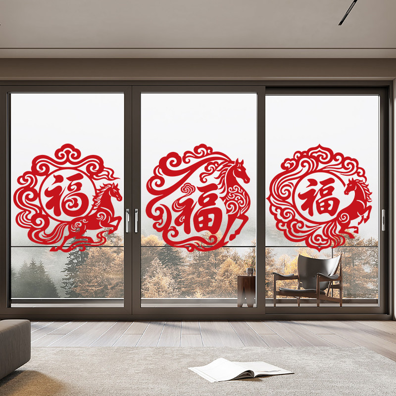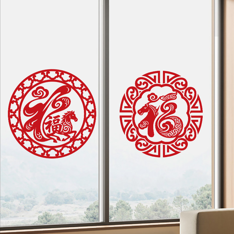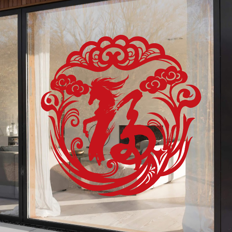 📚 新年2026装饰静电窗花飘窗店铺玻璃门贴氛围布置马年春节过年贴纸