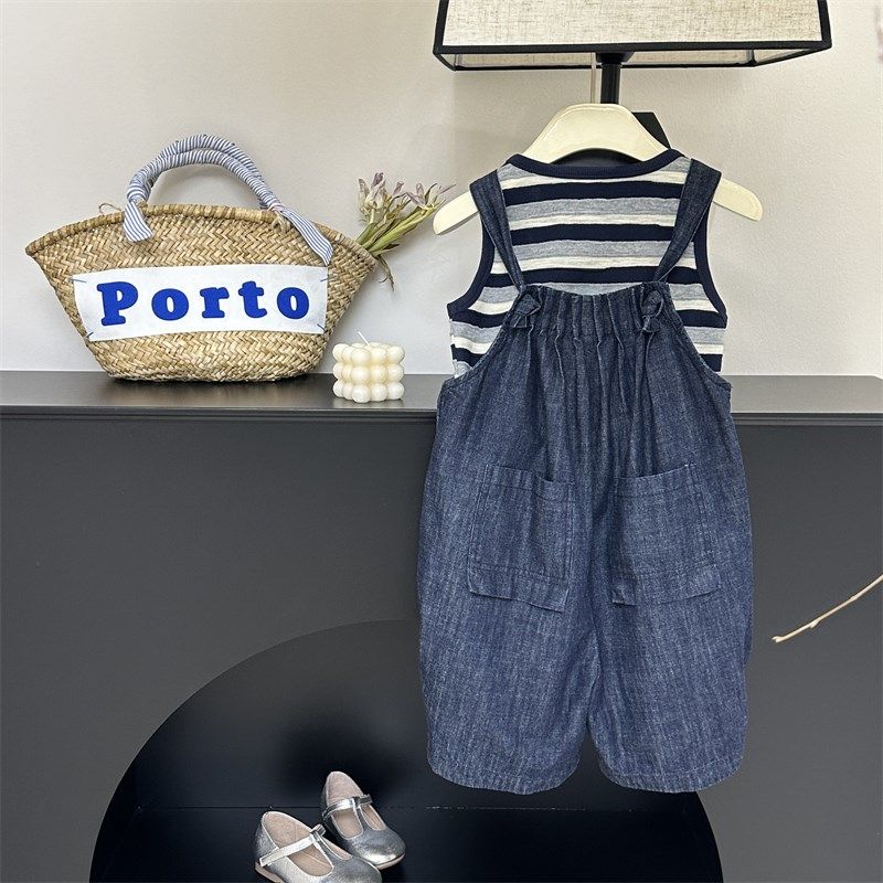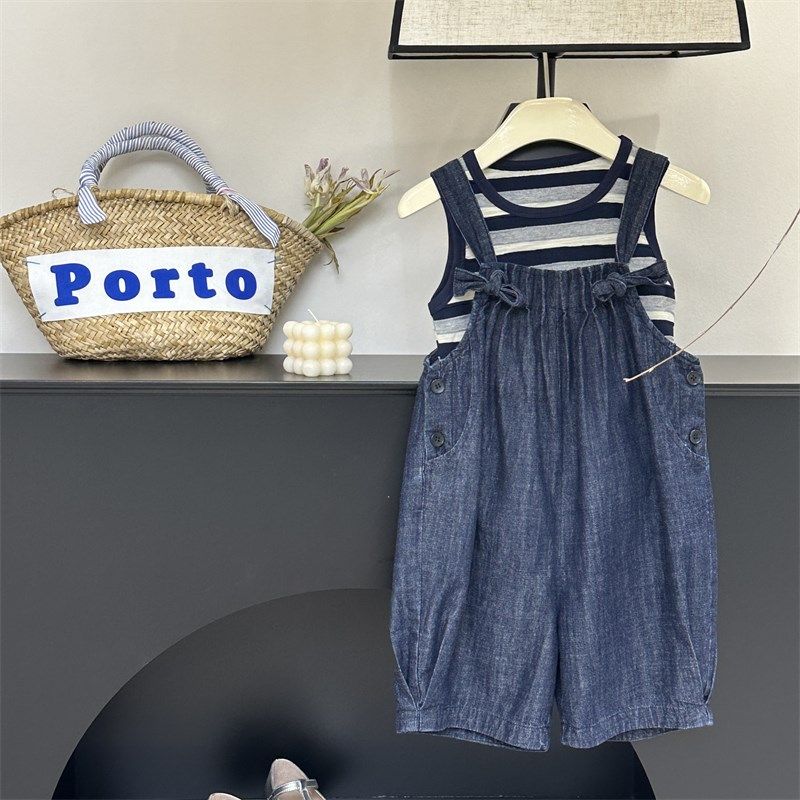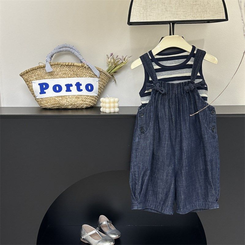 📚 童装女童背带裤短裤24夏装新款儿童牛仔裤洋气中大童宽松休闲裤子