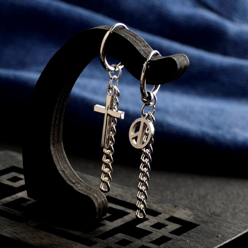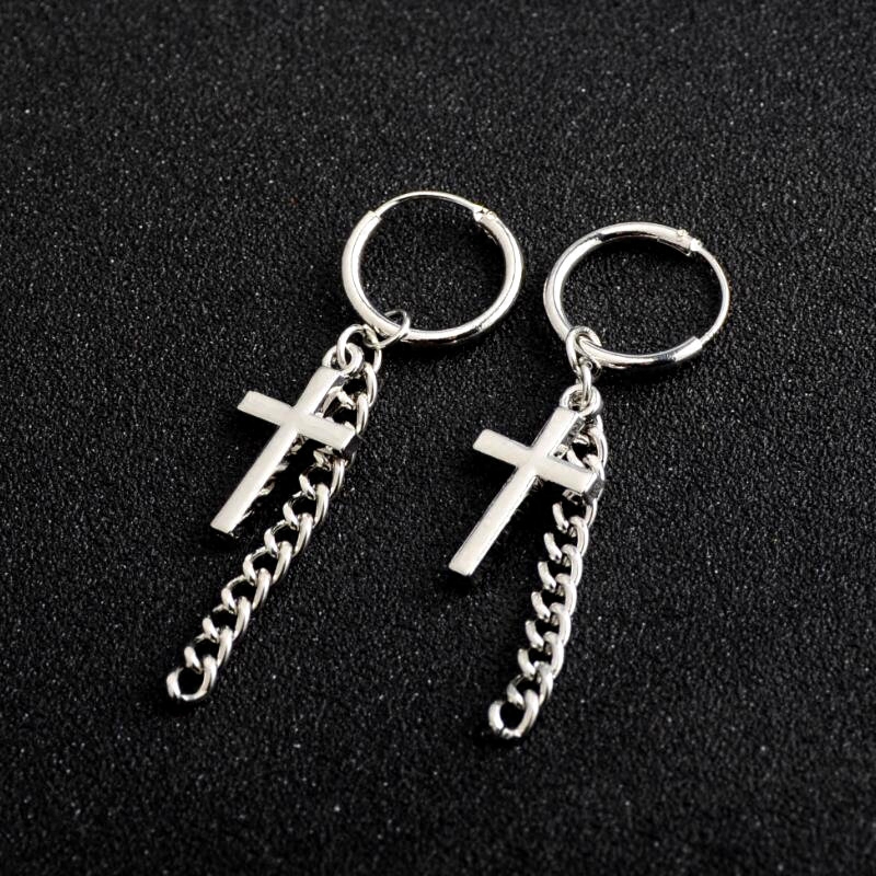 📚 权志龙GD同款耳环耳坠十字架潮男长款耳钉耳链韩版嘻哈耳夹耳饰女