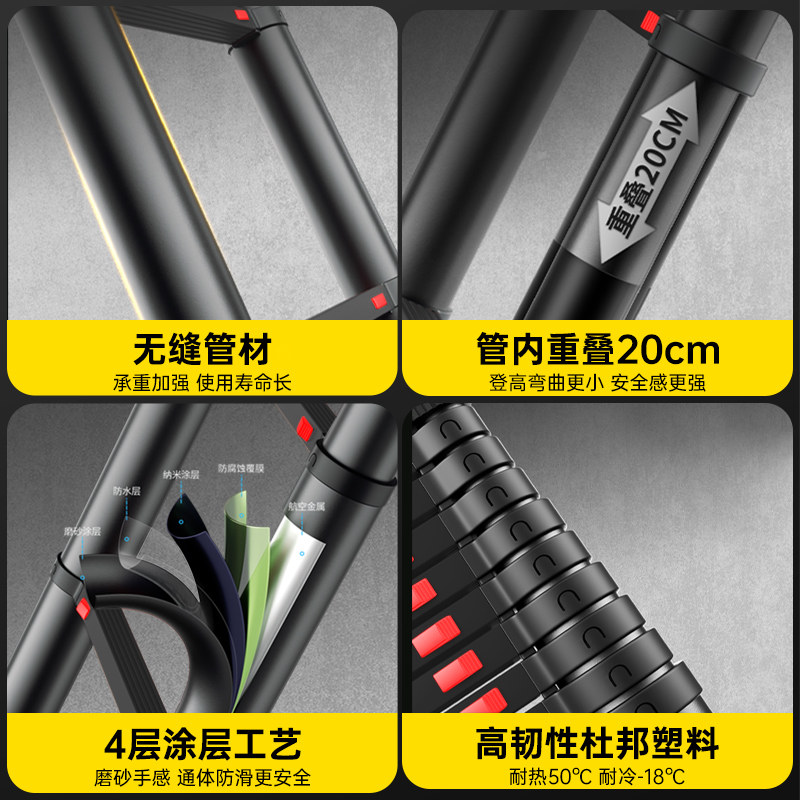📚 全新无缝伸缩梯家用梯铝合金多功能折叠梯居家户外便携式碳钢梯子