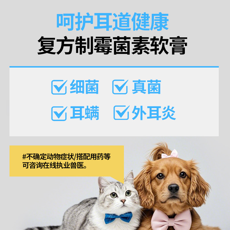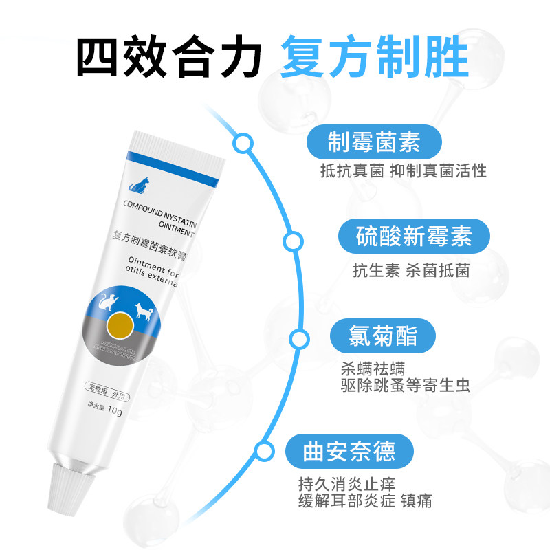📚 复方制霉菌素软膏宠物猫咪狗狗犬除耳螨外耳炎抗真菌细菌正品兽药