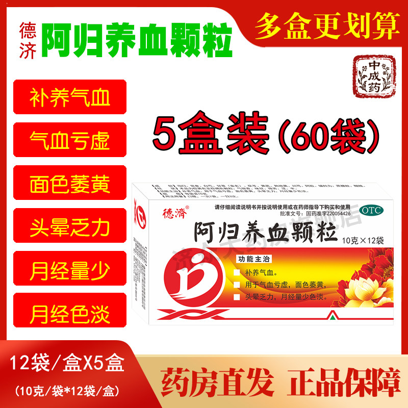 📚 德济阿归养血颗粒12袋*5盒补养气血用于气血亏虚面色萎黄头晕乏力