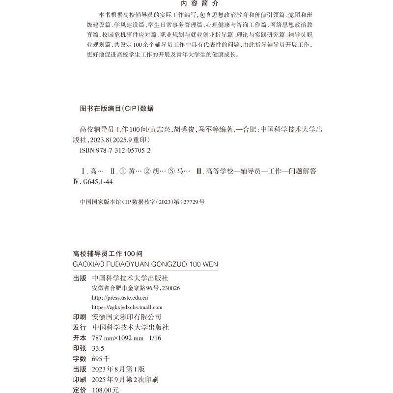 📚 【官方正版】高校辅导员工作100问中国科学技术大学出版社黄志兴,胡秀俊,马军 等 编大学教材9787312057052大学教材教材练习题集历