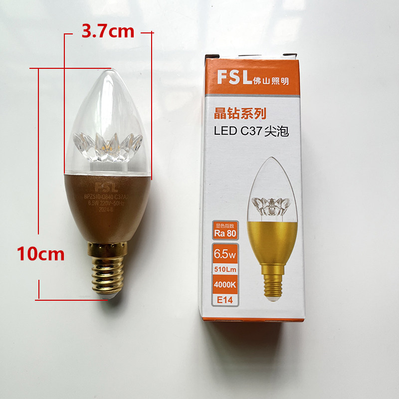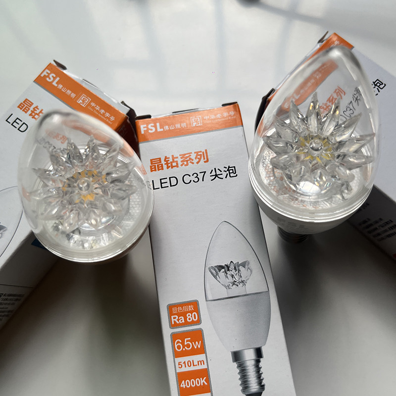 📚 fsl佛山照明led灯泡晶钻系列C37尖泡E14透明莲花水晶节能灯3500k