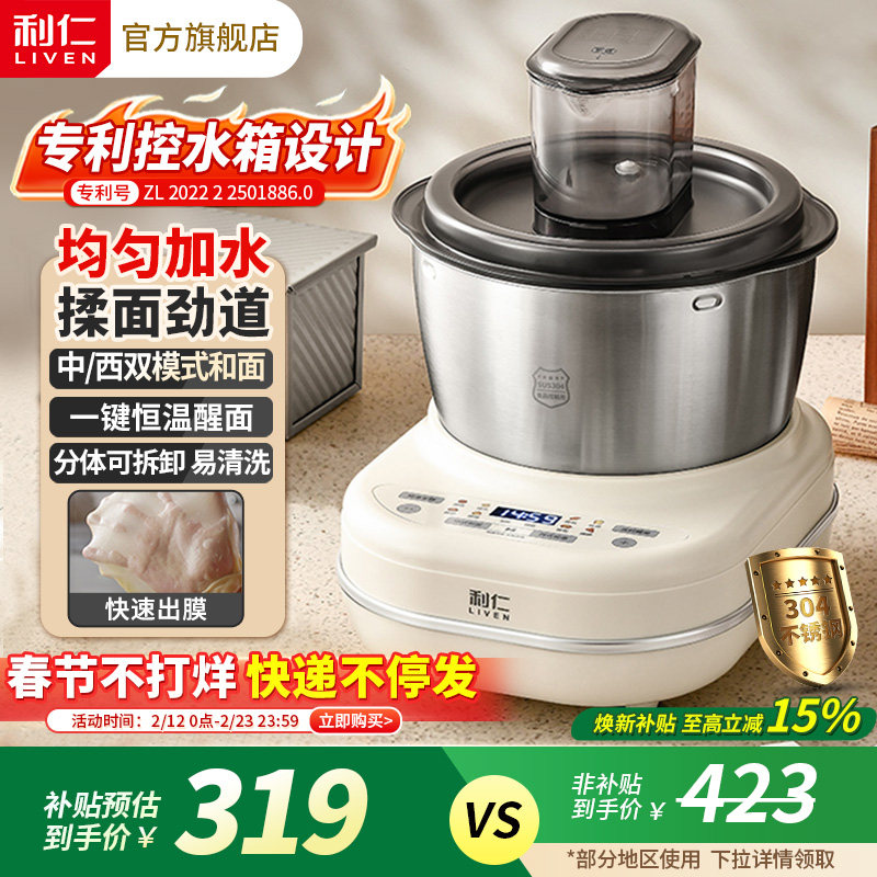 📚 利仁和面机家用揉面机小型全自动厨师机和面发酵一体搅面机新款