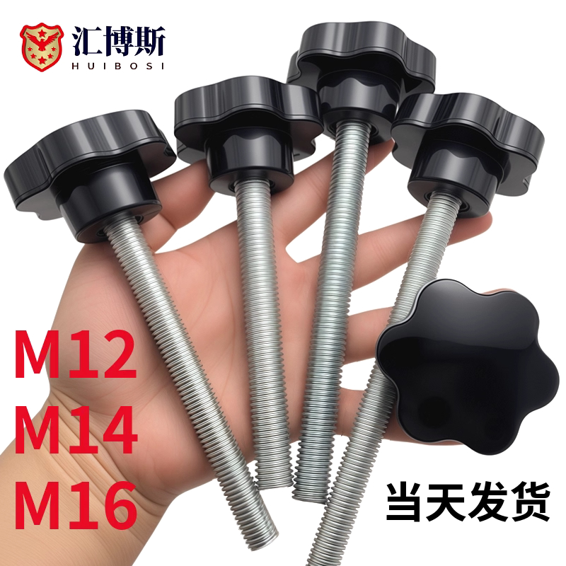 📚 M12M14M16大梅花手柄螺丝钉星型旋钮加长手拧螺栓压面机调节手轮
