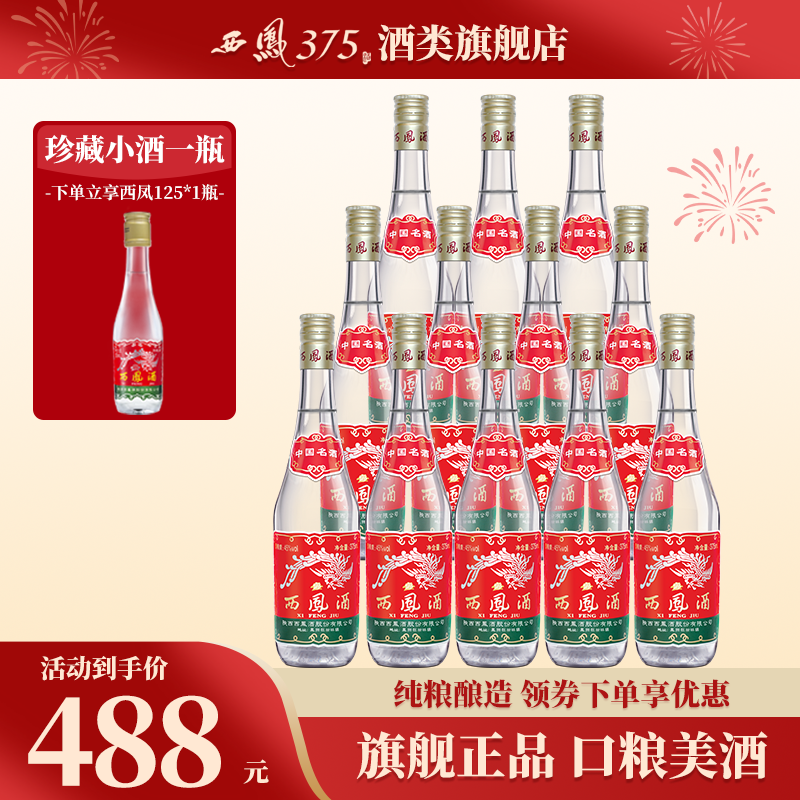 📚 西凤375(中国名酒)45度凤香型粮食酒水国产白酒原厂 375mL*12瓶