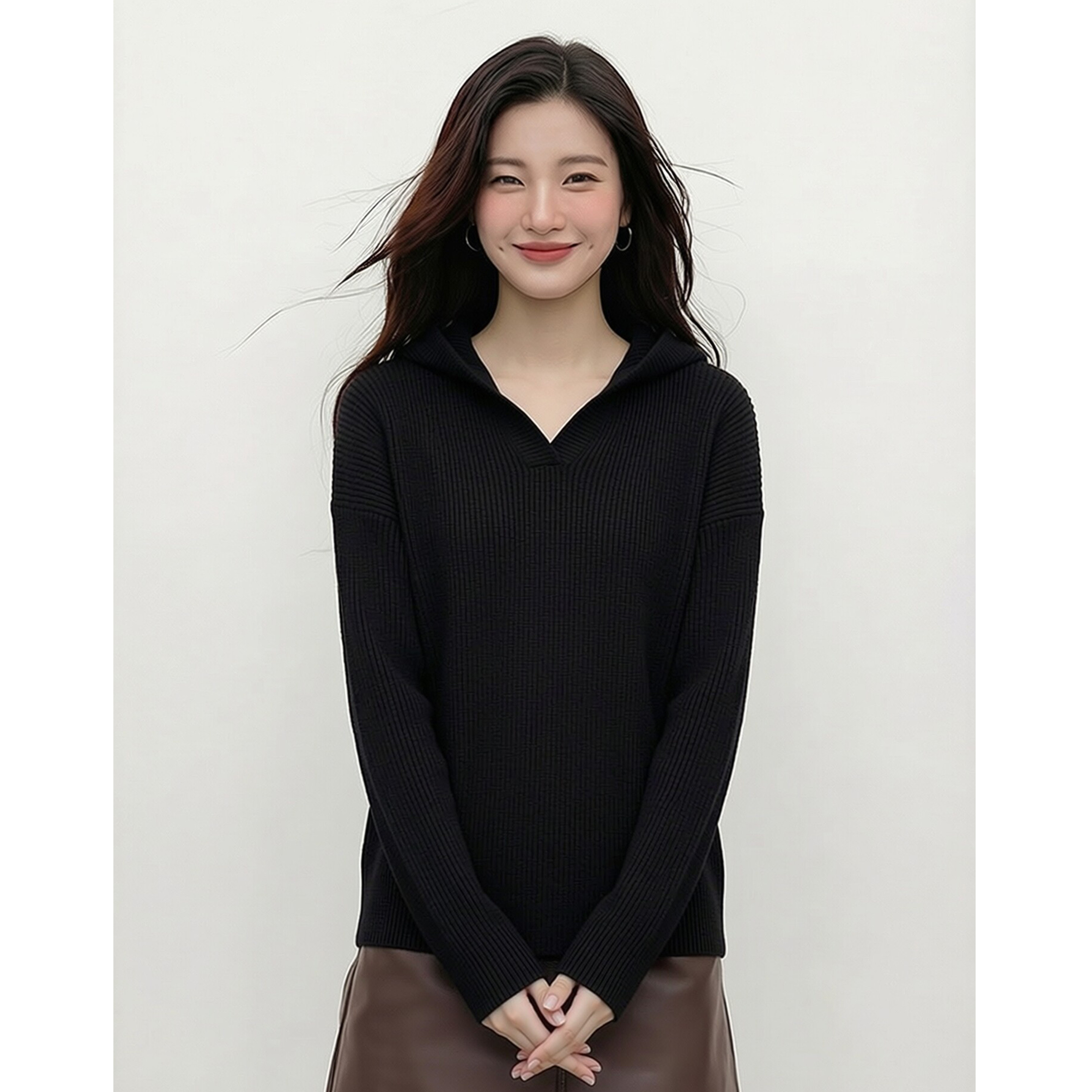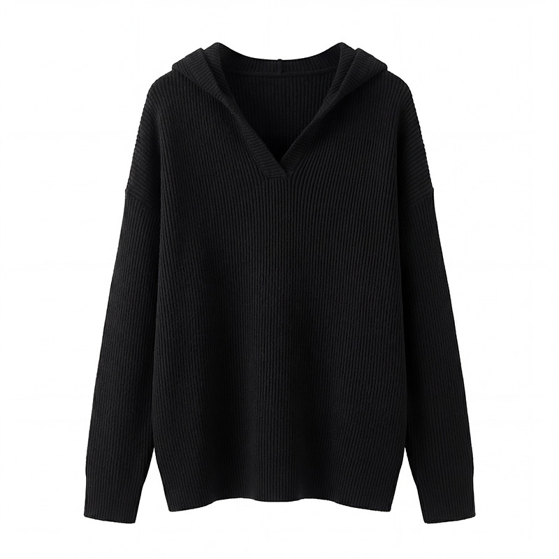 📚 [清爽利落感]新款简约风黑色连帽针织衫女套头长袖休闲毛衣打底衫