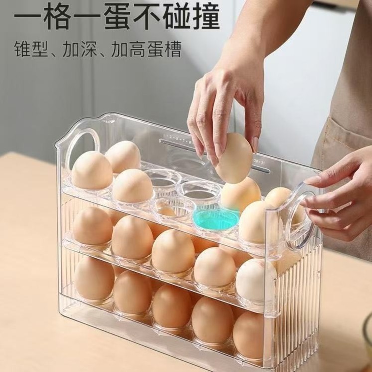 💥鸡蛋收纳盒冰箱侧门加高三层鸡蛋托翻转鸡蛋架!券后价只需💰24!