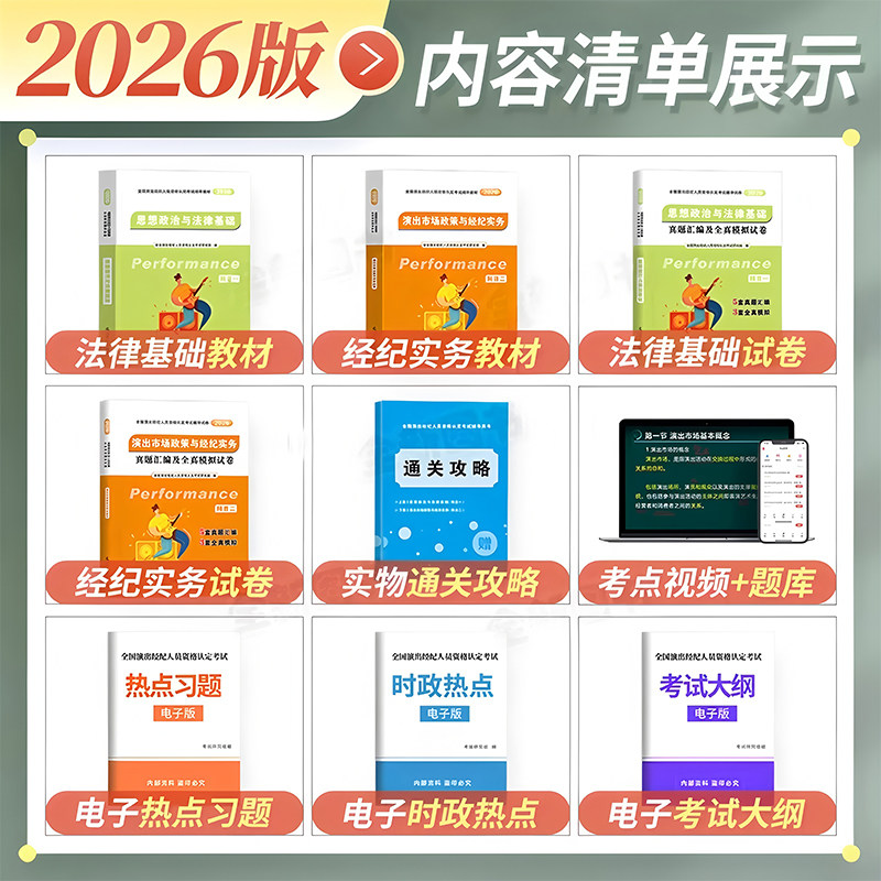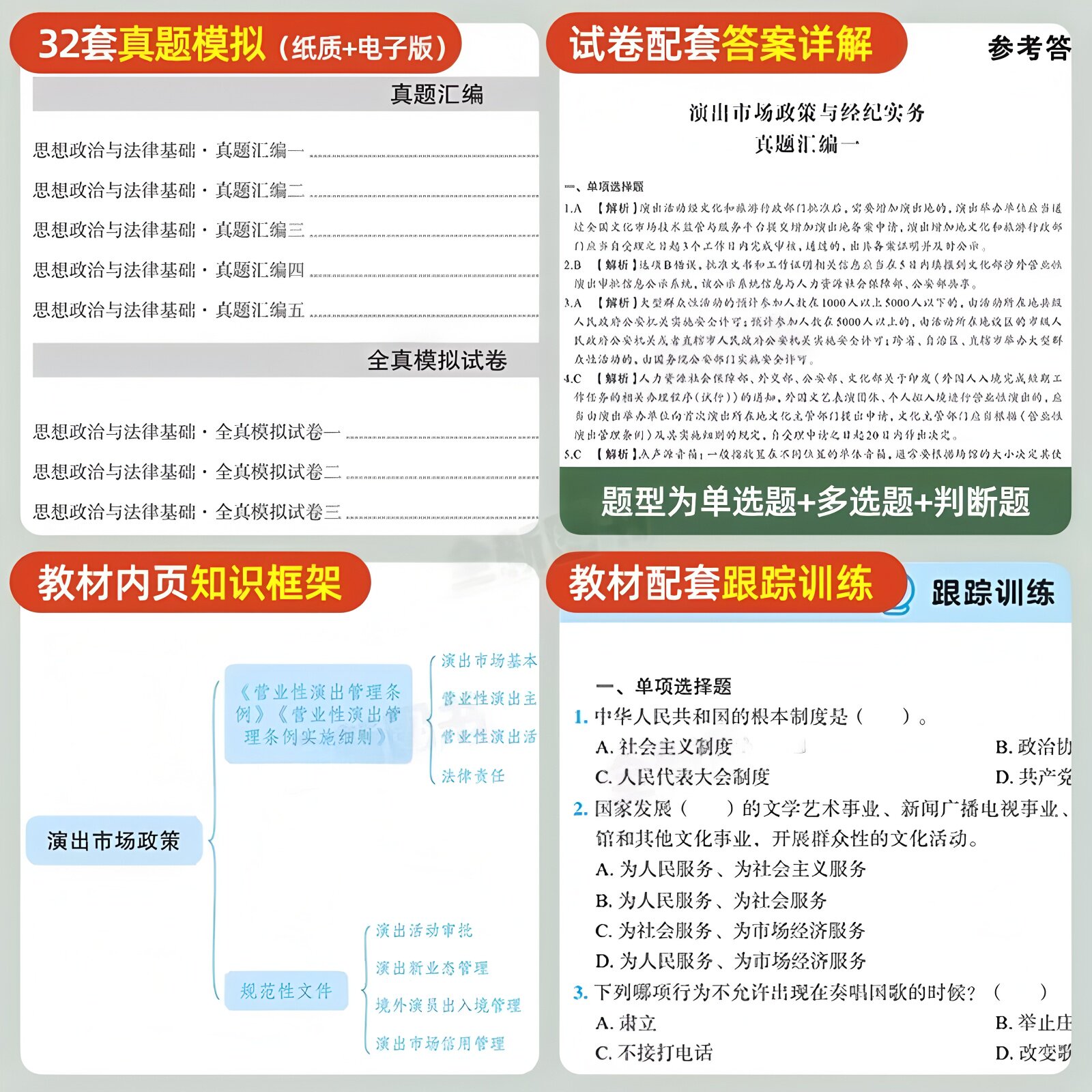 📚 新版2026年演出经纪人资格考试教材历年真题库试卷全套演艺职业证官方全国市场政策与经纪实务思想政治法律基础科目一二书网课2025
