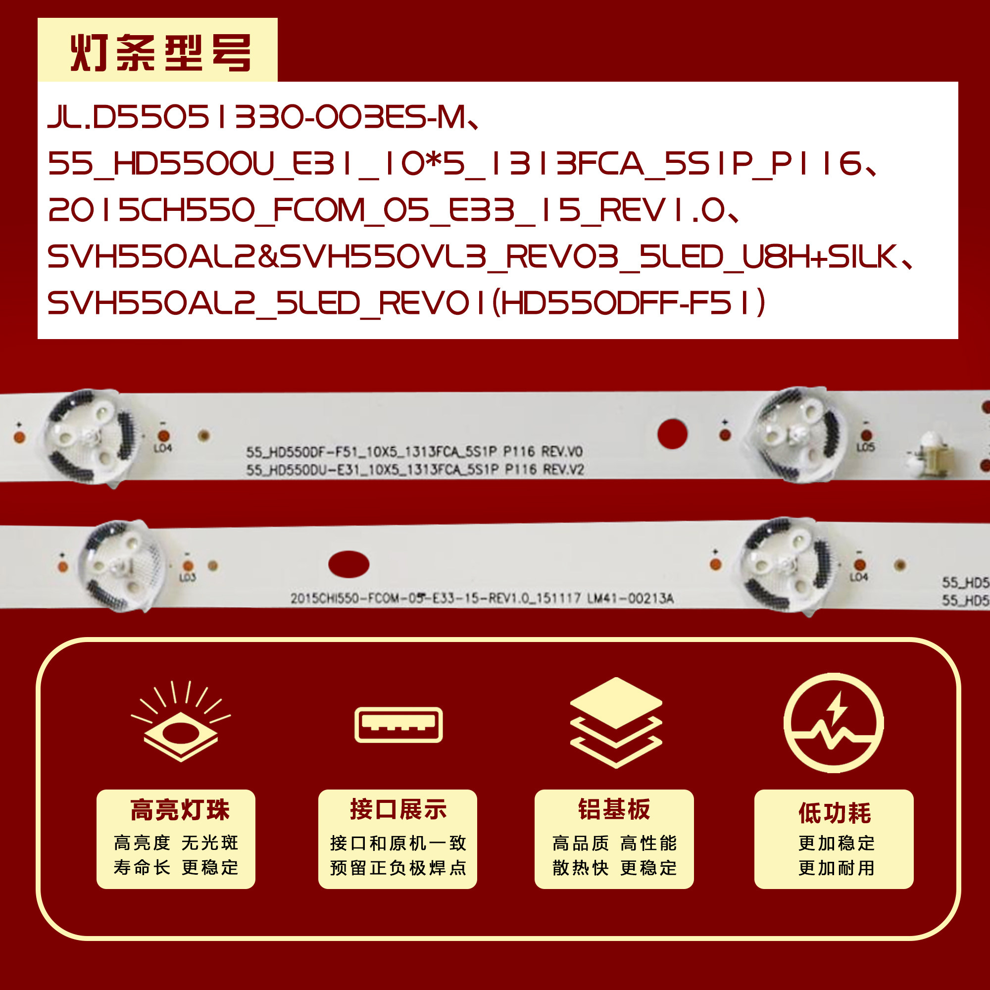 📚 适用海信LED55EC500U LED55N3000U LED55E5U LED55N3000U电视灯条