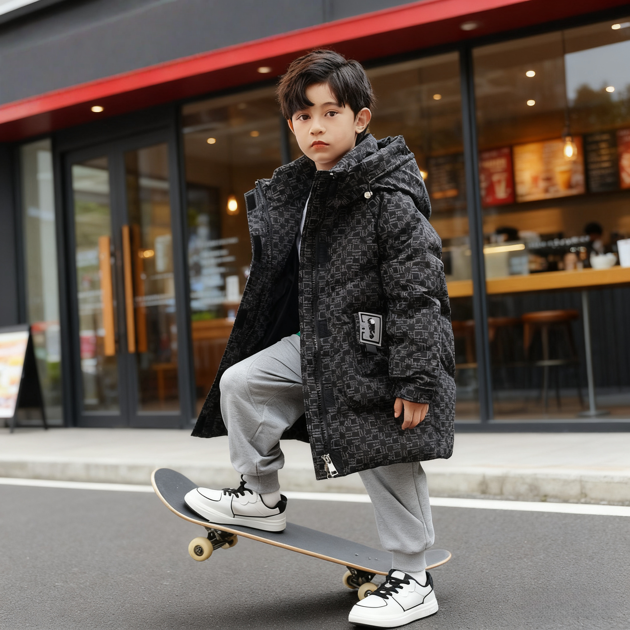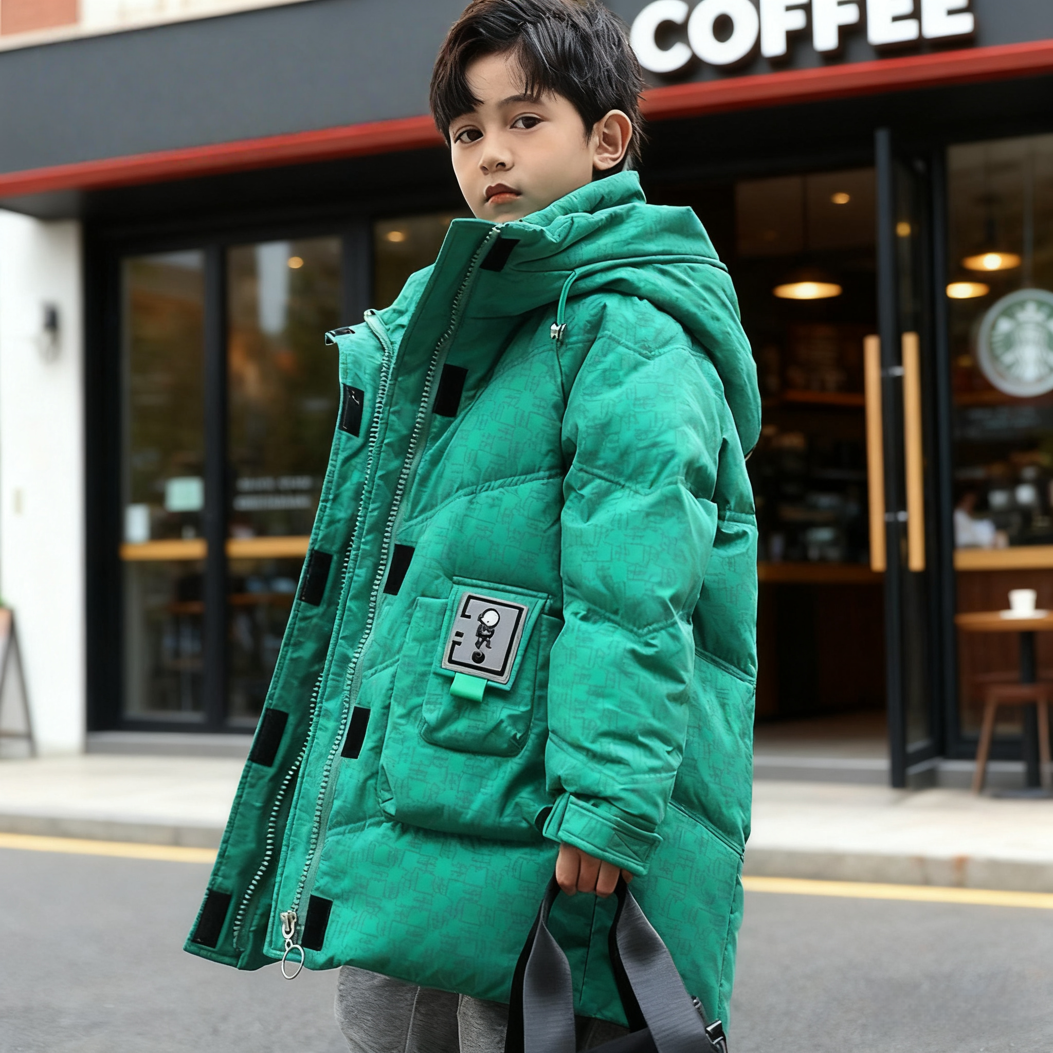 📚 儿童羽绒棉服男童中长款25新款洋气中大童加厚三防男孩子冬季外套