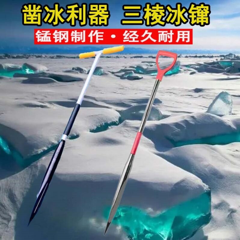 📚 冰钓开孔器冬钓手摇冰钻便携式冰镩破冰神器手动冰窟窿凿穿打孔机
