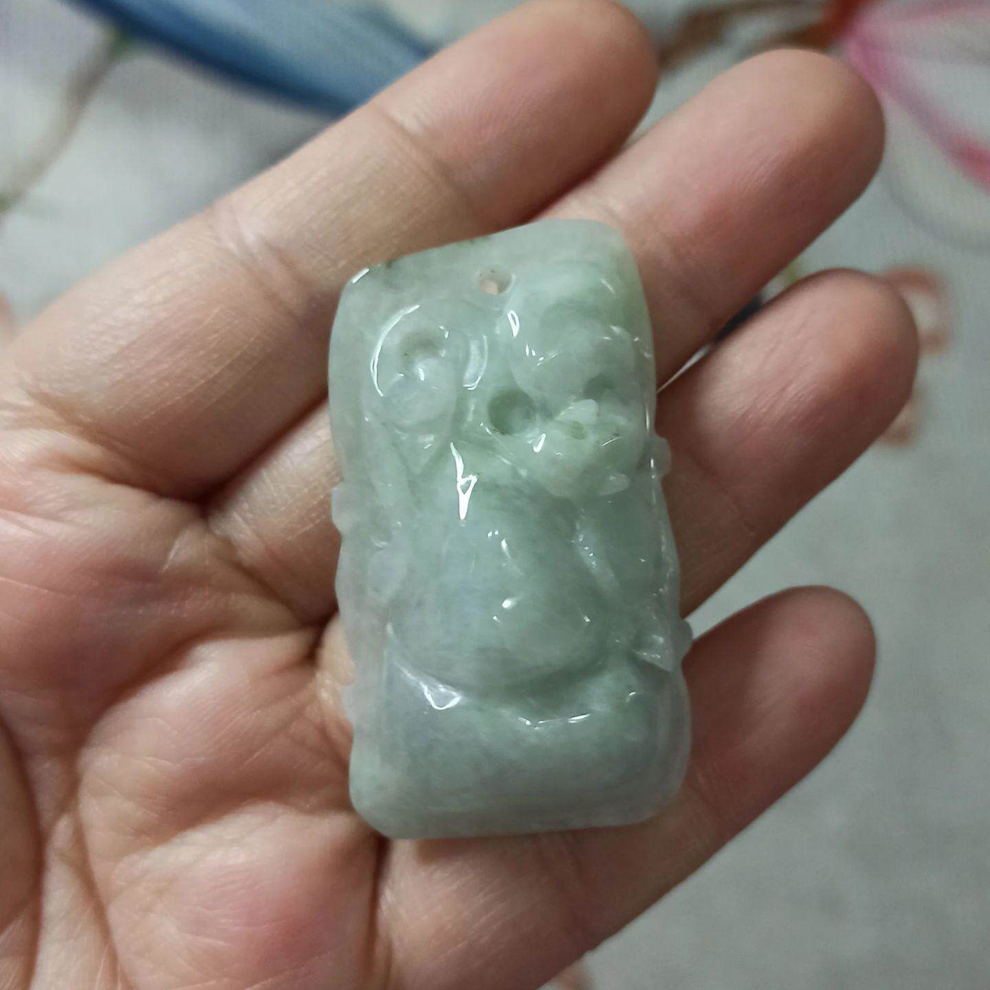 📚 332缅甸天然翡翠吊坠雕刻件蝙蝠葫芦飘花卡47X27mm左右满48元包邮