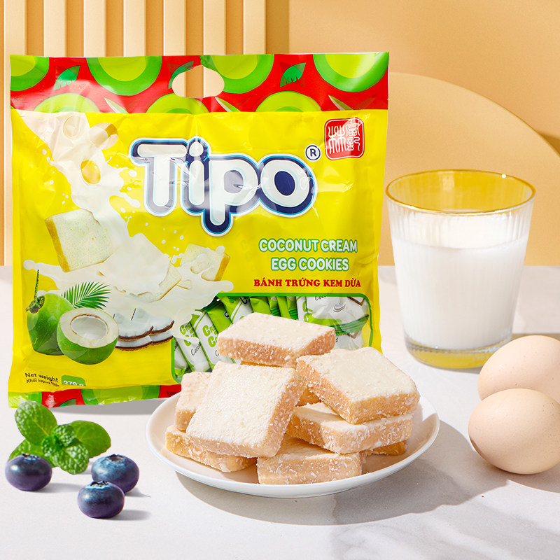 📚 越南进口Tipo面包干牛奶椰子榴莲涂层面包片早餐饼干休闲零食