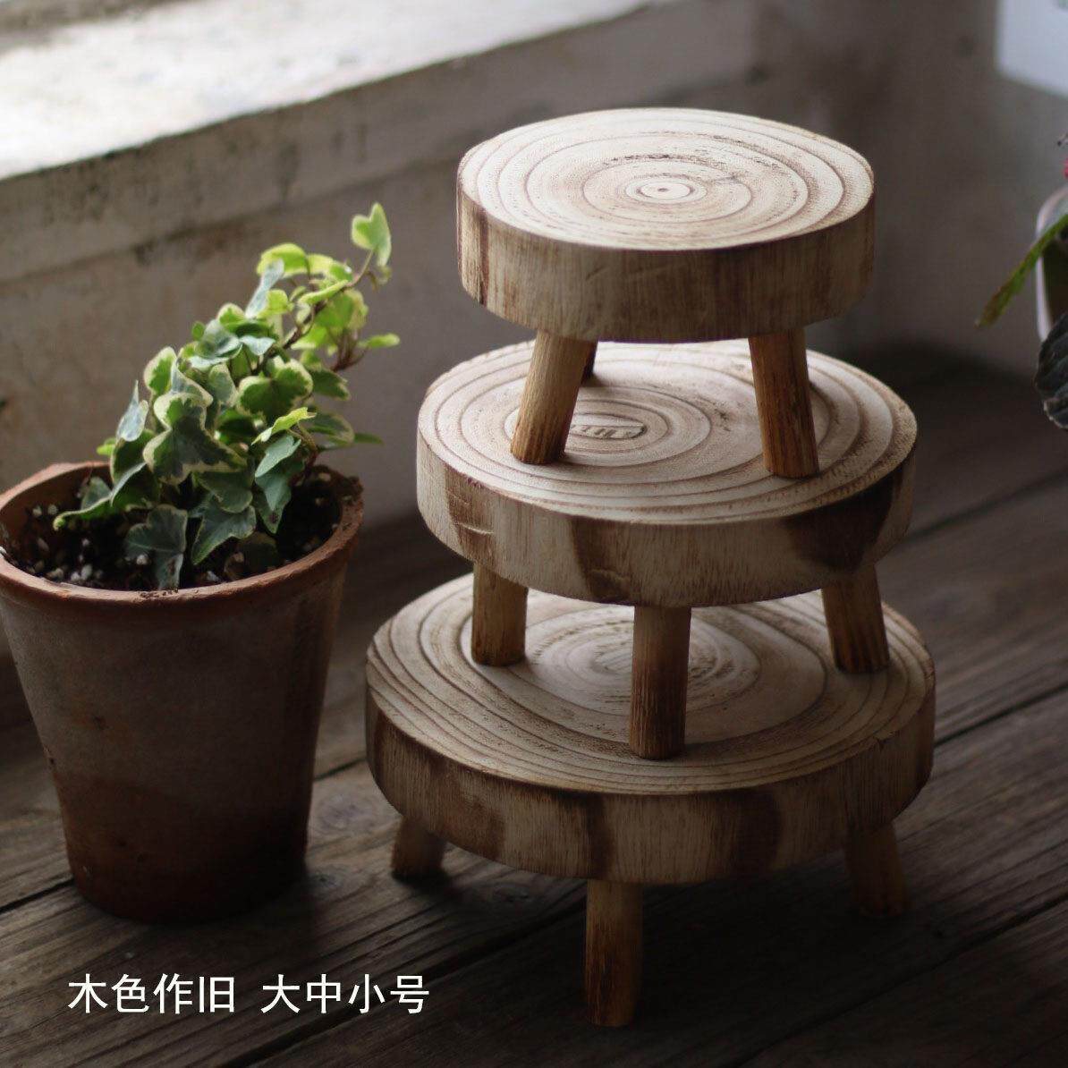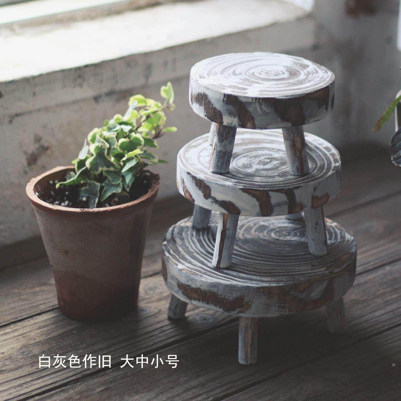 📚 覆古作旧小圆凳花架盆栽增高架乡村破烂风迷你椅子【二店道具铺】