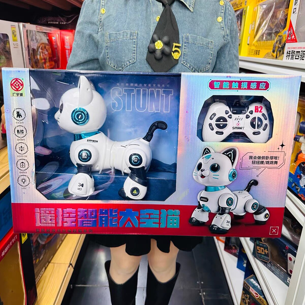 📚 广宇诚遥控智能太空猫AI仿生机械狗说话跳舞触摸手势编程儿童玩具