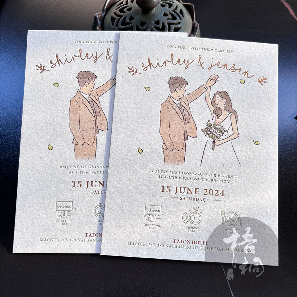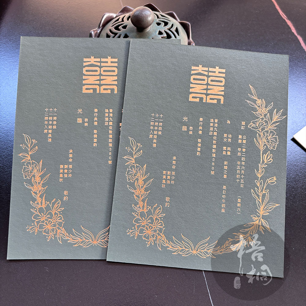 📚 棉纸Letterpress凸版凹印刷双面烫金邀请函请柬绿色手绘喜帖定制