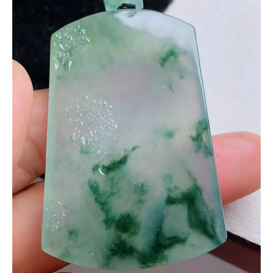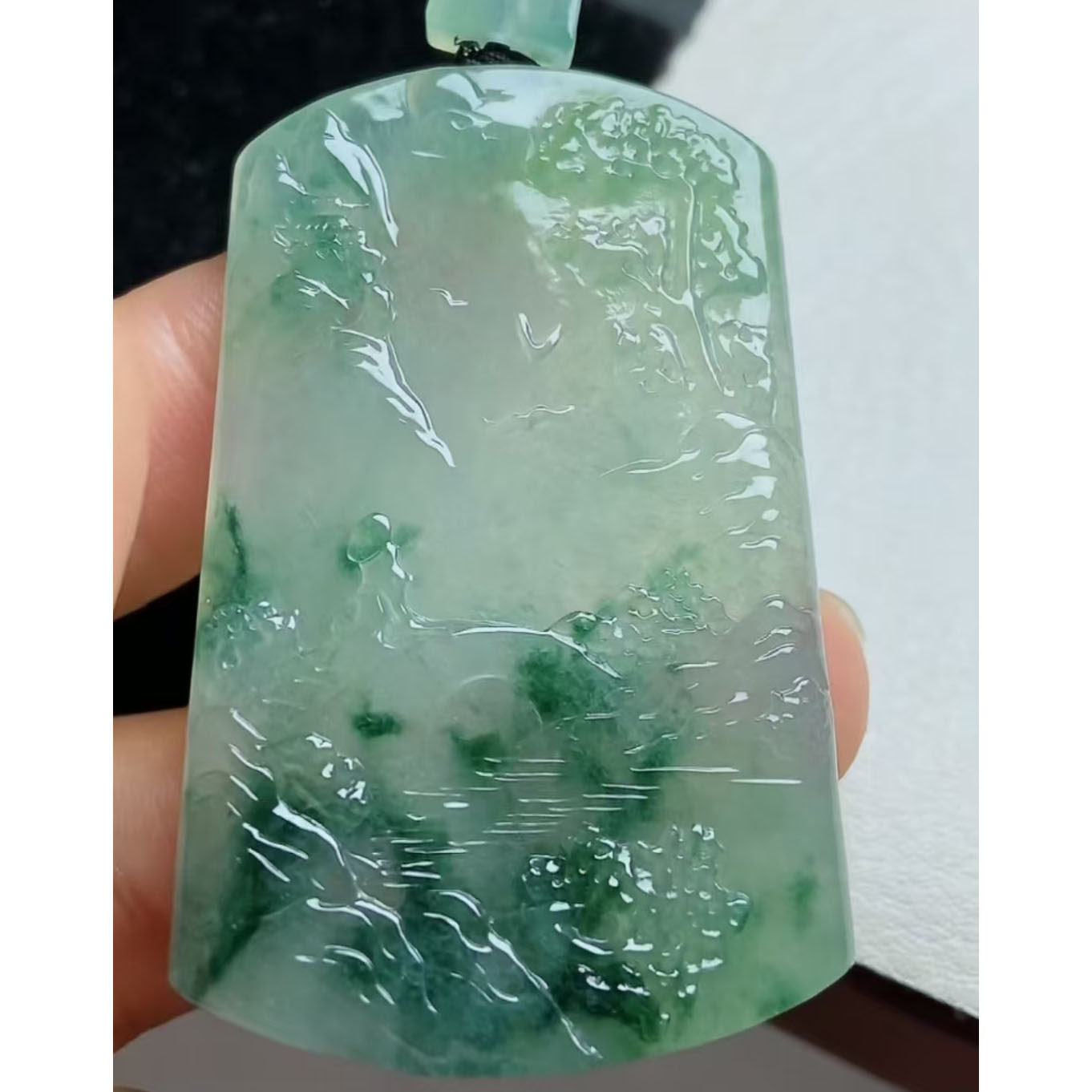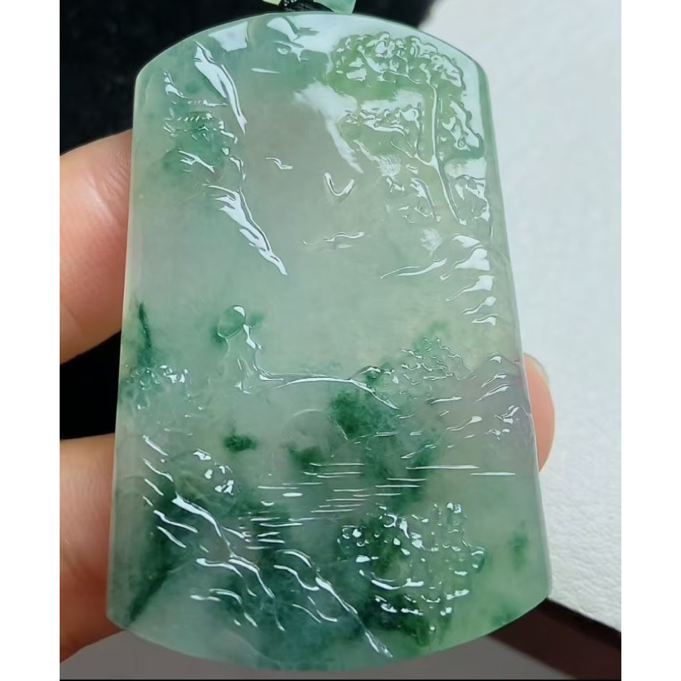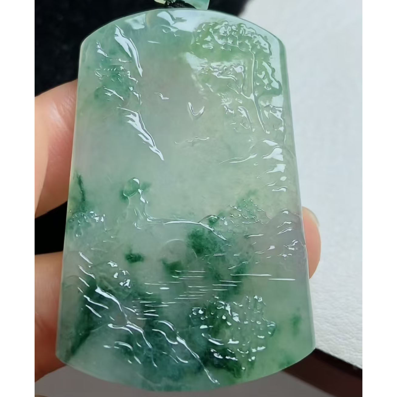 📚 A货缅甸天然翡翠 山水牌 冰种飘花 精雕细刻 意境漂亮53.6-36-5.5