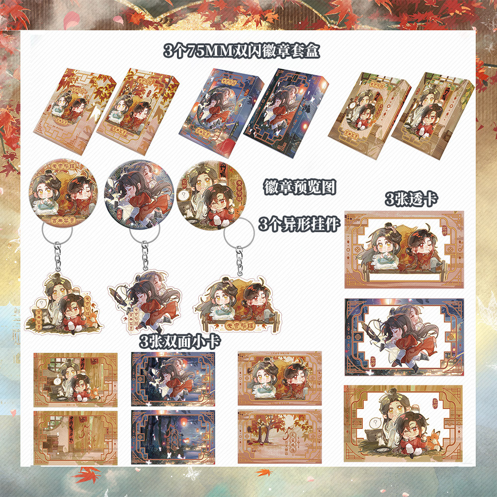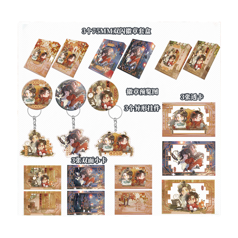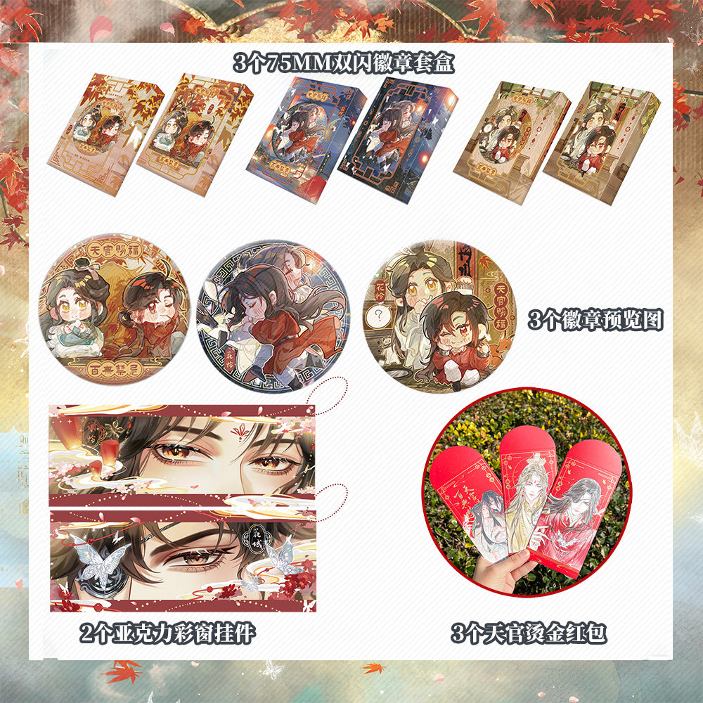 📚 天官赐福新年福利3个75MM双闪徽章套盒+小卡+挂件+透卡多规格可选