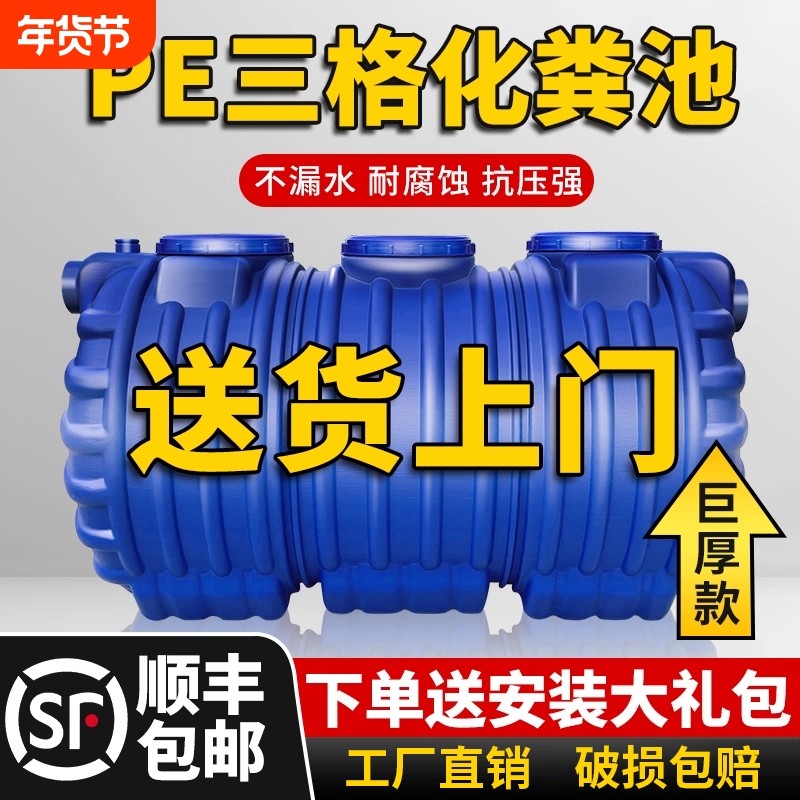 📚 牛筋化粪池家用新农村厕所加厚三格一体PE塑粪桶钢化玻璃自建房