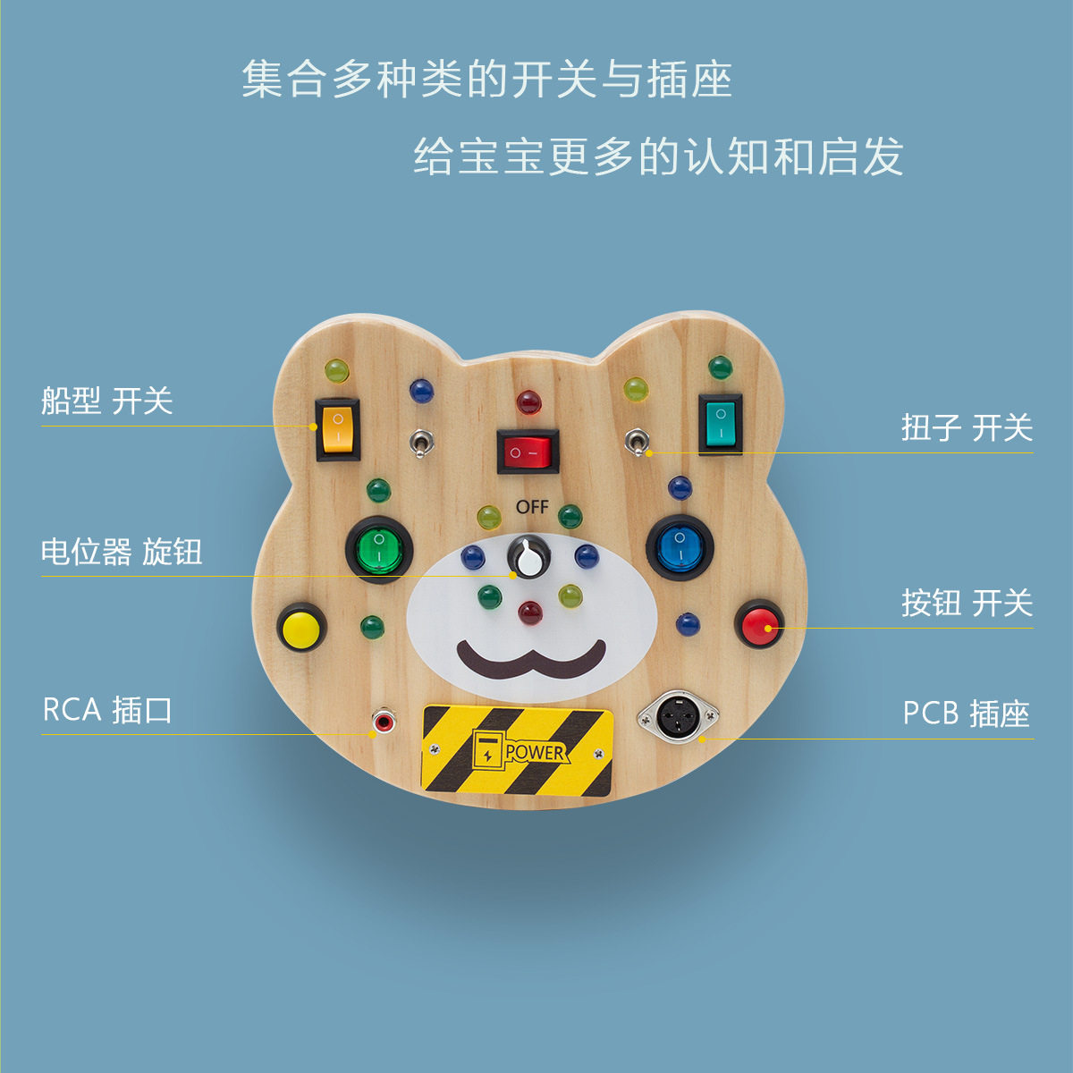 📚 Montessori幼儿童玩具按钮开关感官板3岁宝宝木制LED灯开关忙碌板