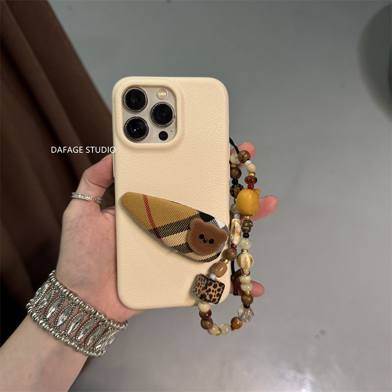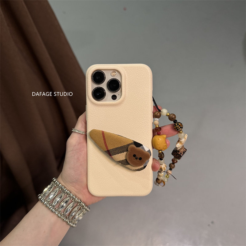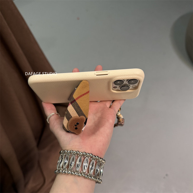 📚 ins可爱格子小熊支架挂链适用苹果14Promax手机壳17女16pro苹果17promax韩15