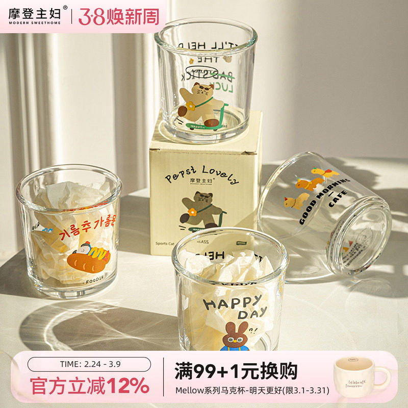 📚 摩登主妇动物派对玻璃杯咖啡杯马克杯牛奶早餐杯水杯家用杯子套装