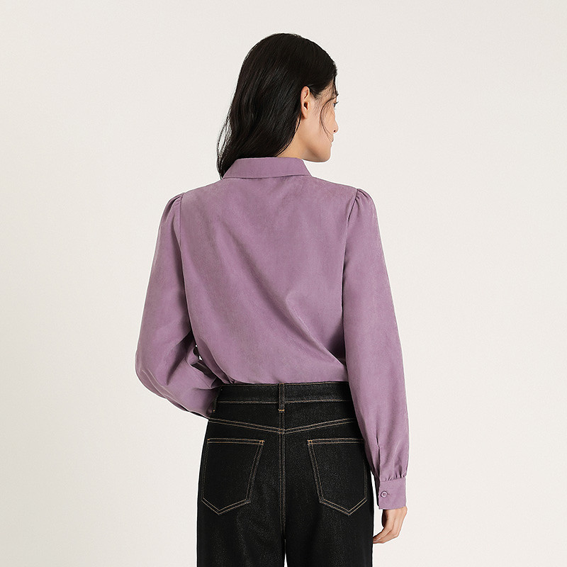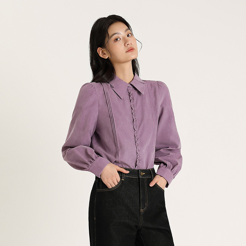 📚 【博主同款】PIT宫廷复古捏褶法式衬衫女2025冬季新款紫色上衬衣
