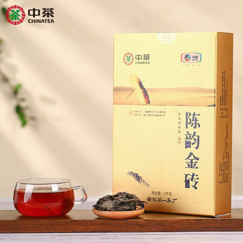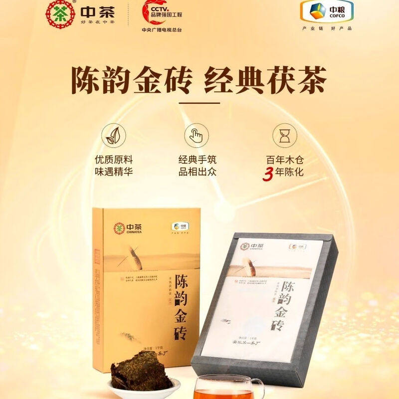 📚 中茶湖南安化黑茶三年陈陈韵金砖金花手筑茯砖1kg中粮茶叶礼盒装