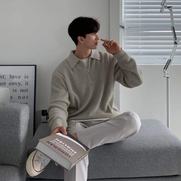 📚 Half Zip Sweater Men's Autumn/Winter Polo Shirt Loos