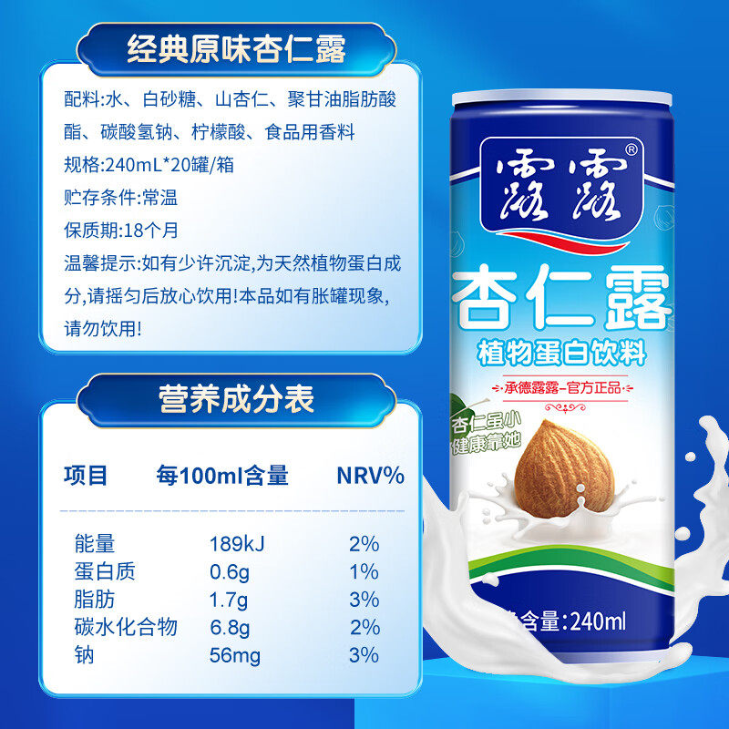 📚 露露杏仁露经典240ml含糖/无糖杏仁奶饮料整箱植物蛋白早餐