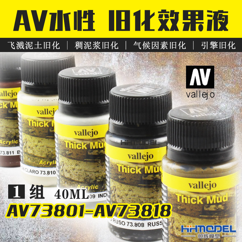 📚 恒辉模型 AV 水性旧化效果液AV73801-AV73818 泥浆 汽油效果 40ML