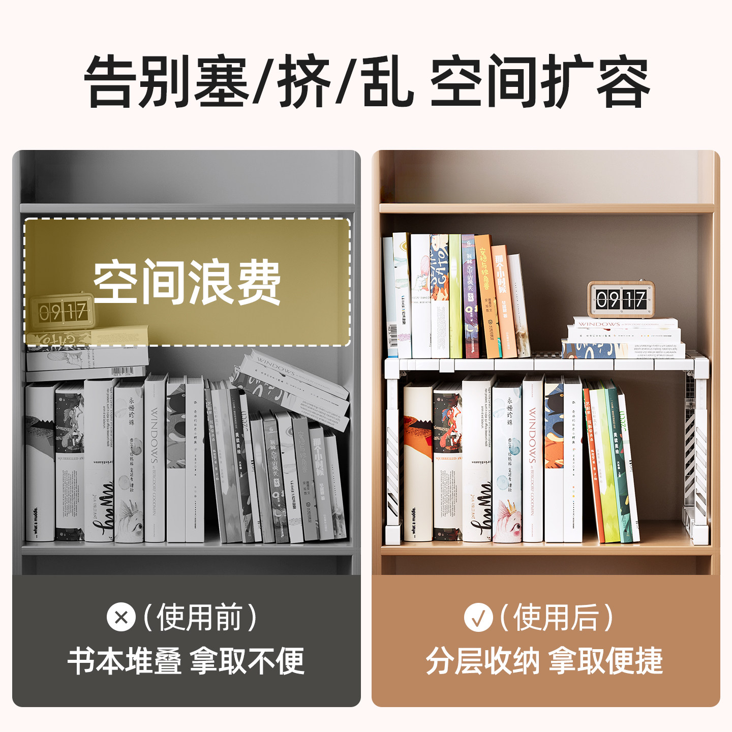📚 书架分层隔板可伸缩书房柜子整理架书柜内置物架文件书籍收纳神器