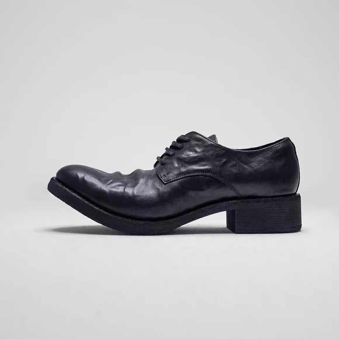 📚 高跟尖头德比鞋男翘头潮款休闲小众厚底增高巫师鞋模特走秀皮鞋男