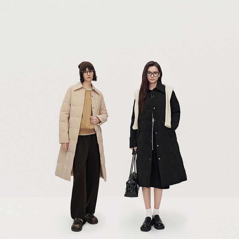 📚 ochirly欧时力 绗缝衬衫羽绒服外套女中长款气质腰带2024秋冬新品