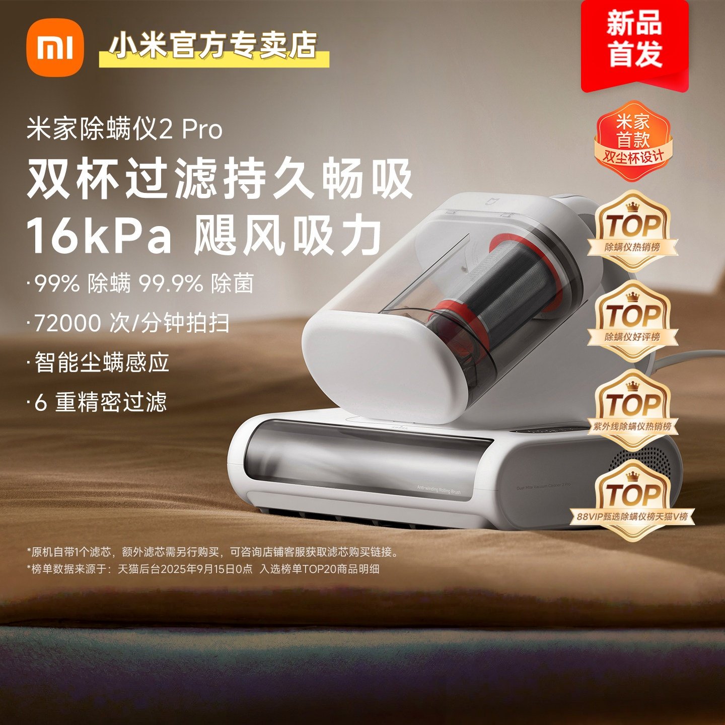📚 米家小米除螨仪2 Pro升级吸力双尘杯智能尘螨感应LED紫外线除菌