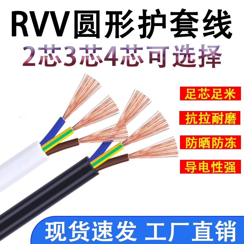 📚 电缆线电线家用软线护套RVV2芯3芯1/2.5/4/6平方户外三相电源线