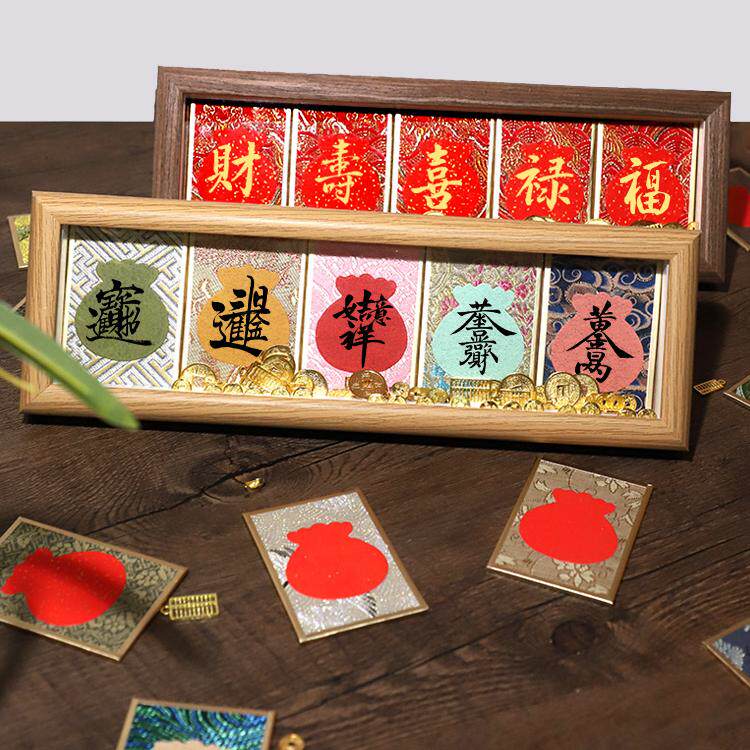 📚 福袋形宋锦硬卡摆台小号迷你文创礼品手写书法卡纸国风锦锻布面金色宣纸楮皮纸混色玻璃画框小卡纸金边硬卡