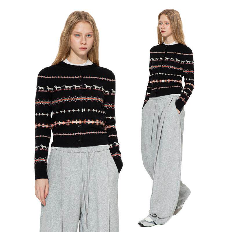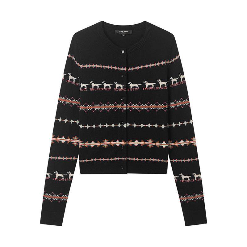 📚 trou noir黑洞 秋冬新款小狗羊毛衫开衫短款费尔岛针织毛衣外套女