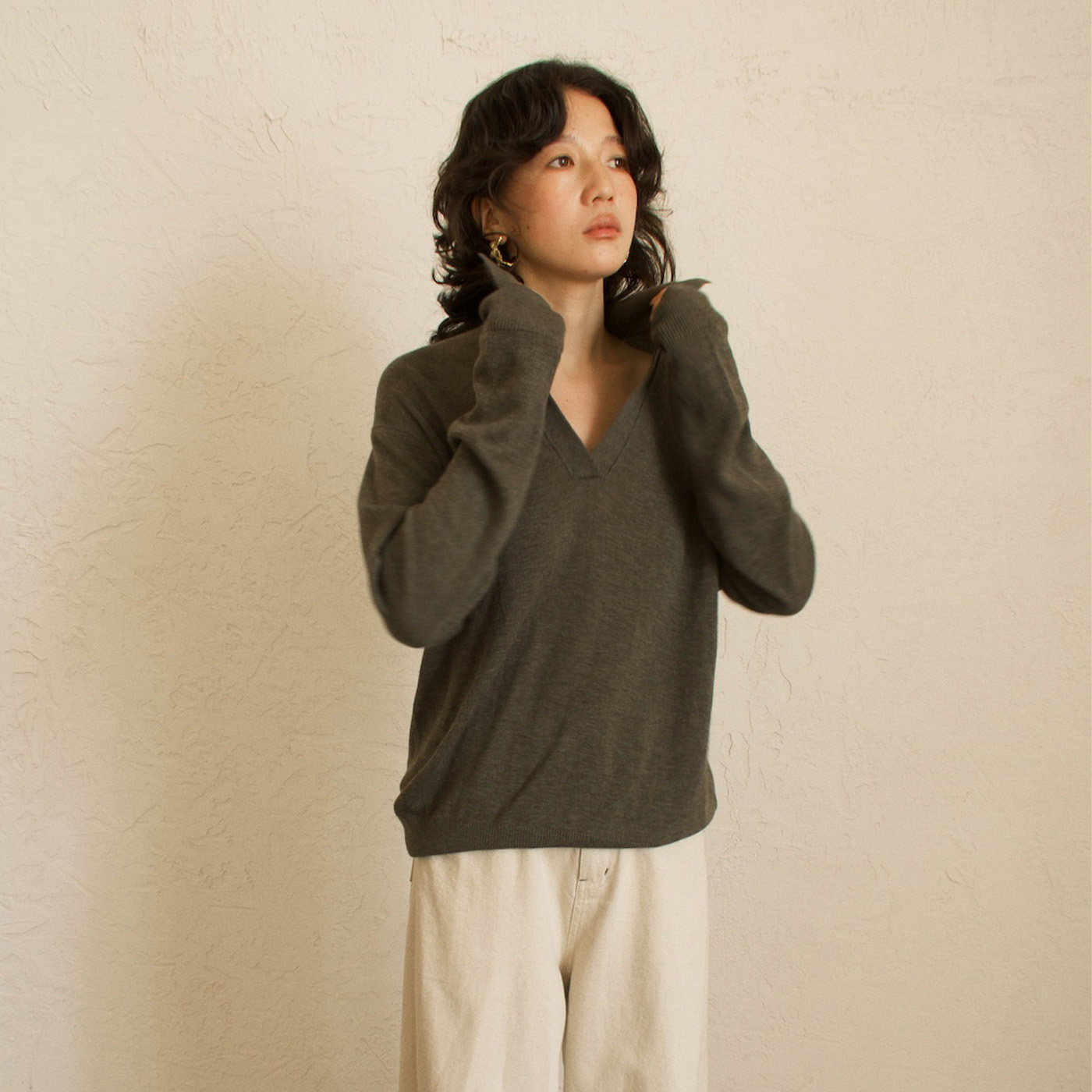 📚 sesaar赛萨 2025新款Lysa莱飒polo上衣美利奴羊绒混纺落肩上衣