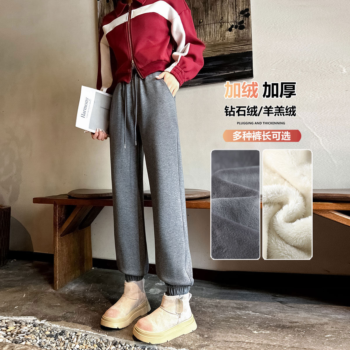 📚 大童冬季加绒加厚羊羔绒裤子女初中学生束脚运动裤棉质显瘦休闲裤