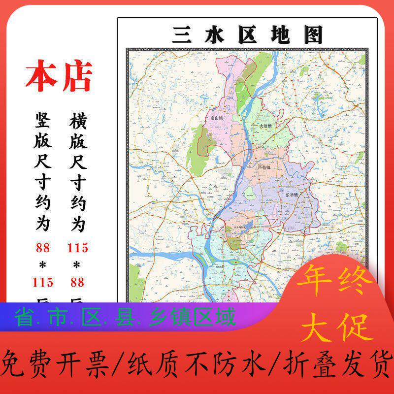 📚 三水区地图1.15m广东省佛山市折叠版装饰画客厅沙发背景墙面壁画