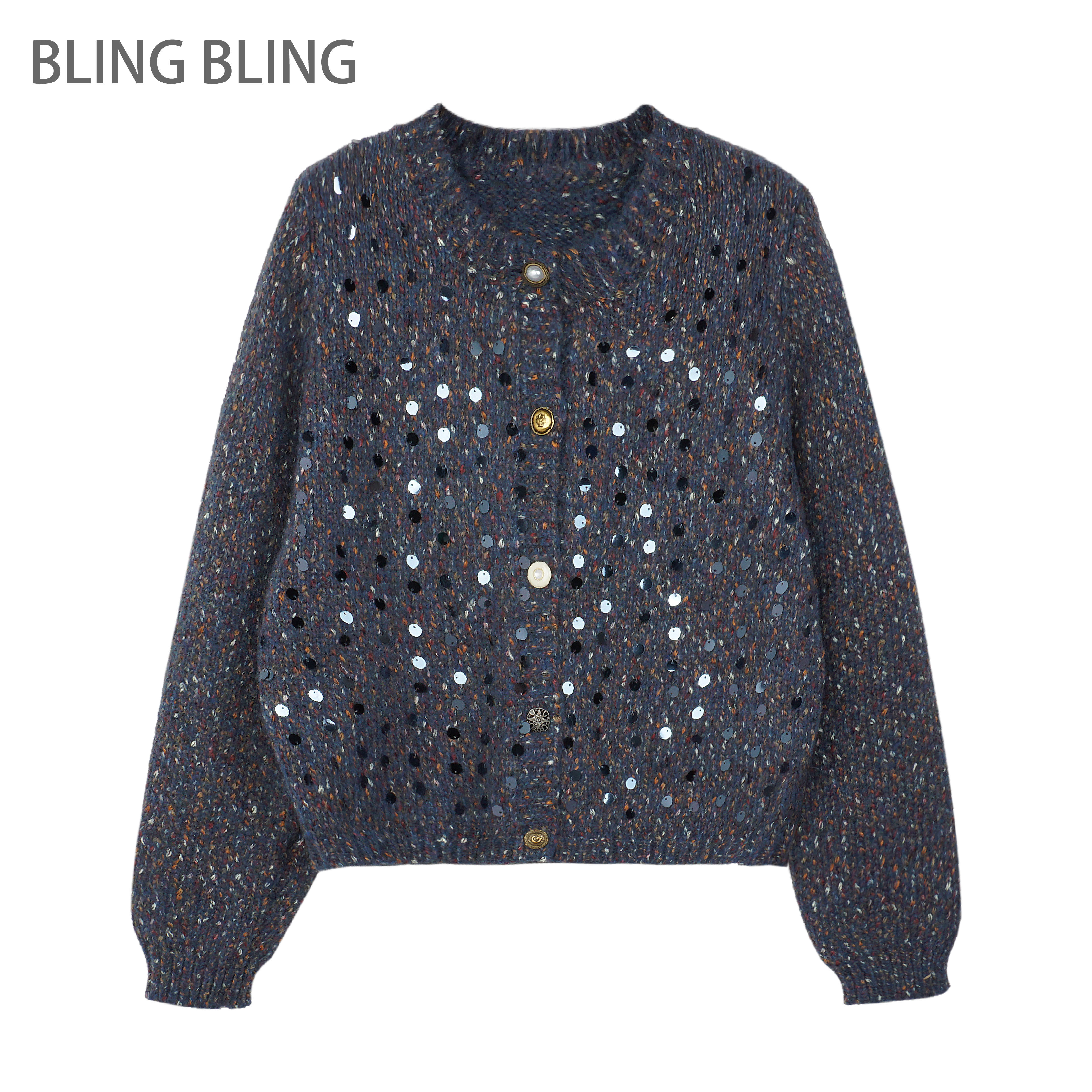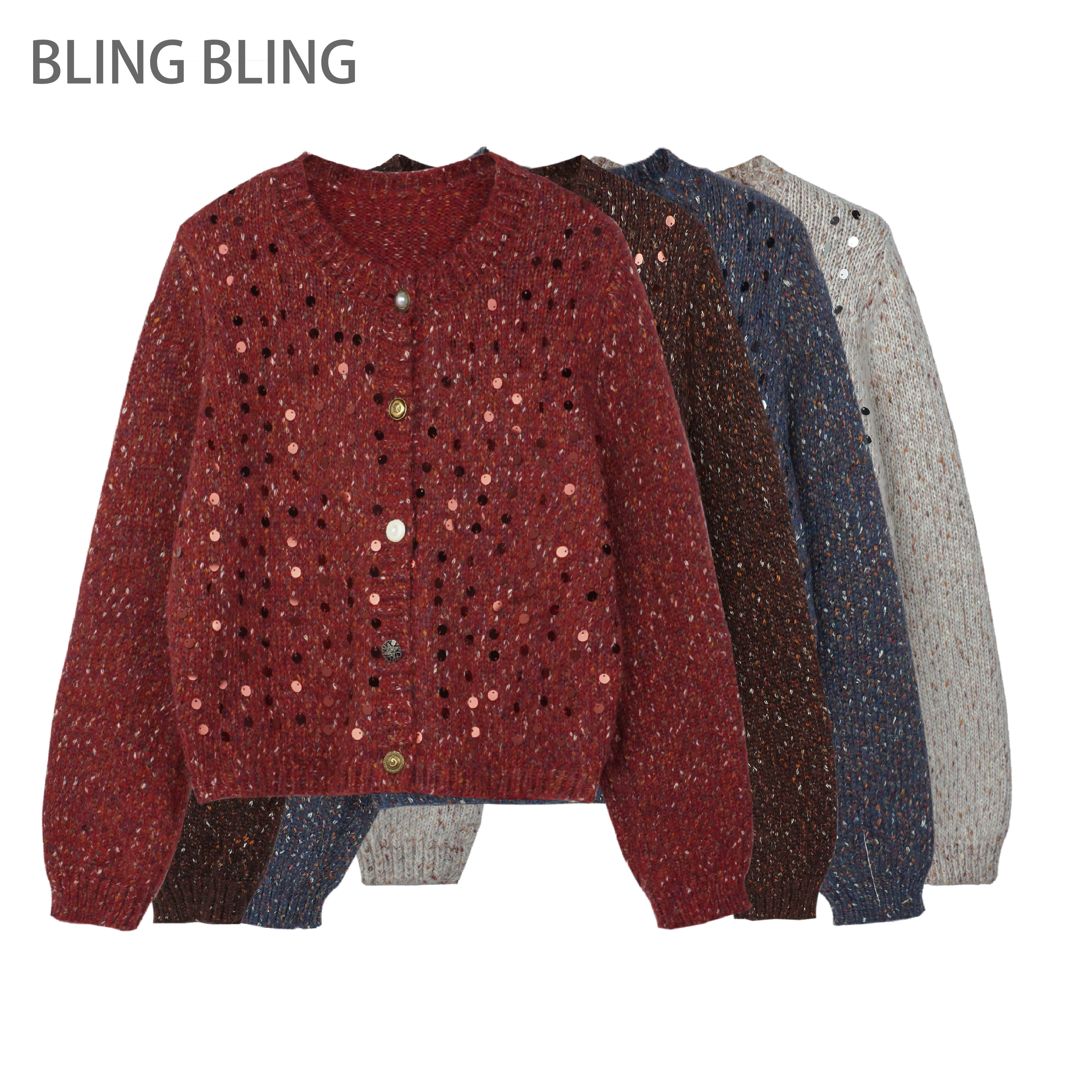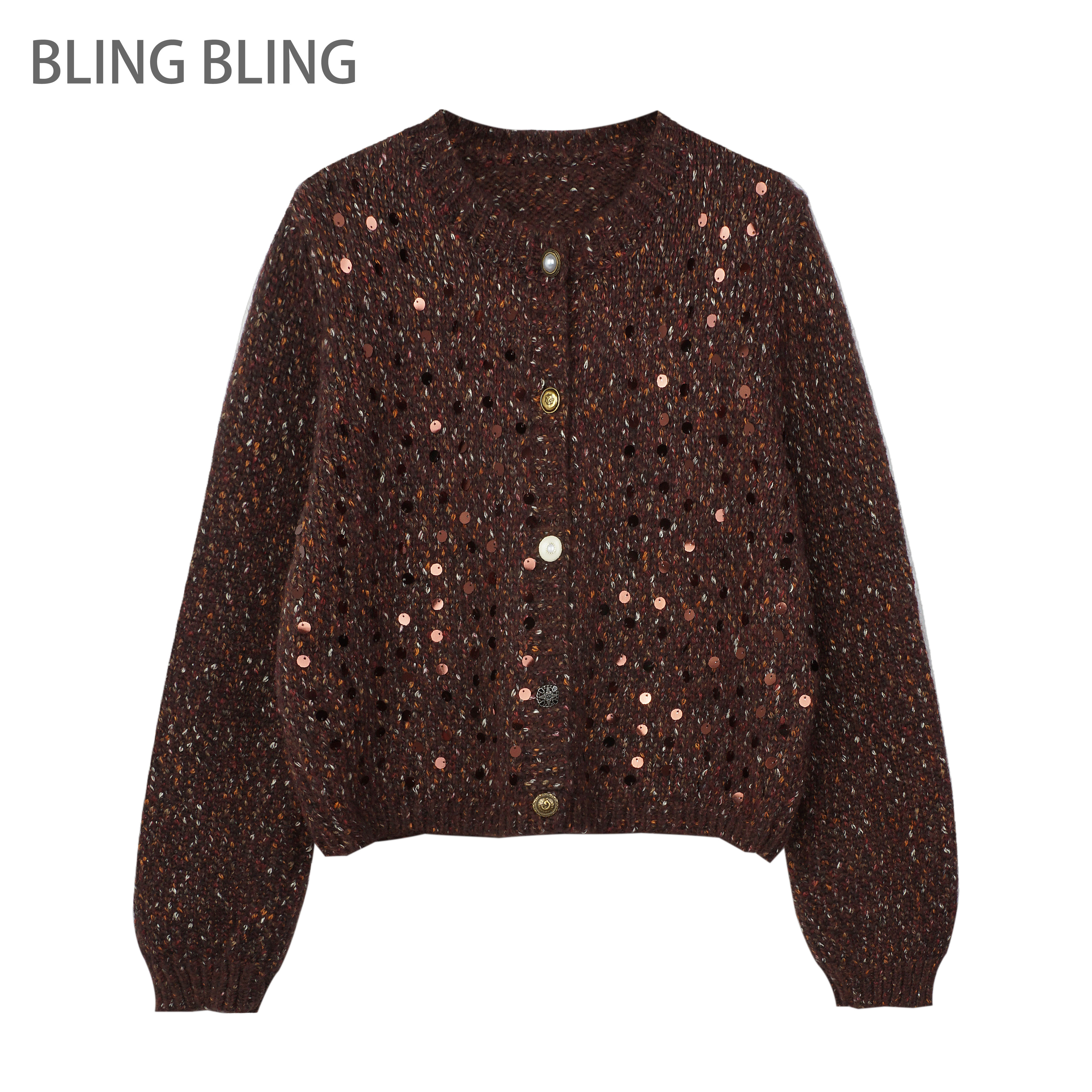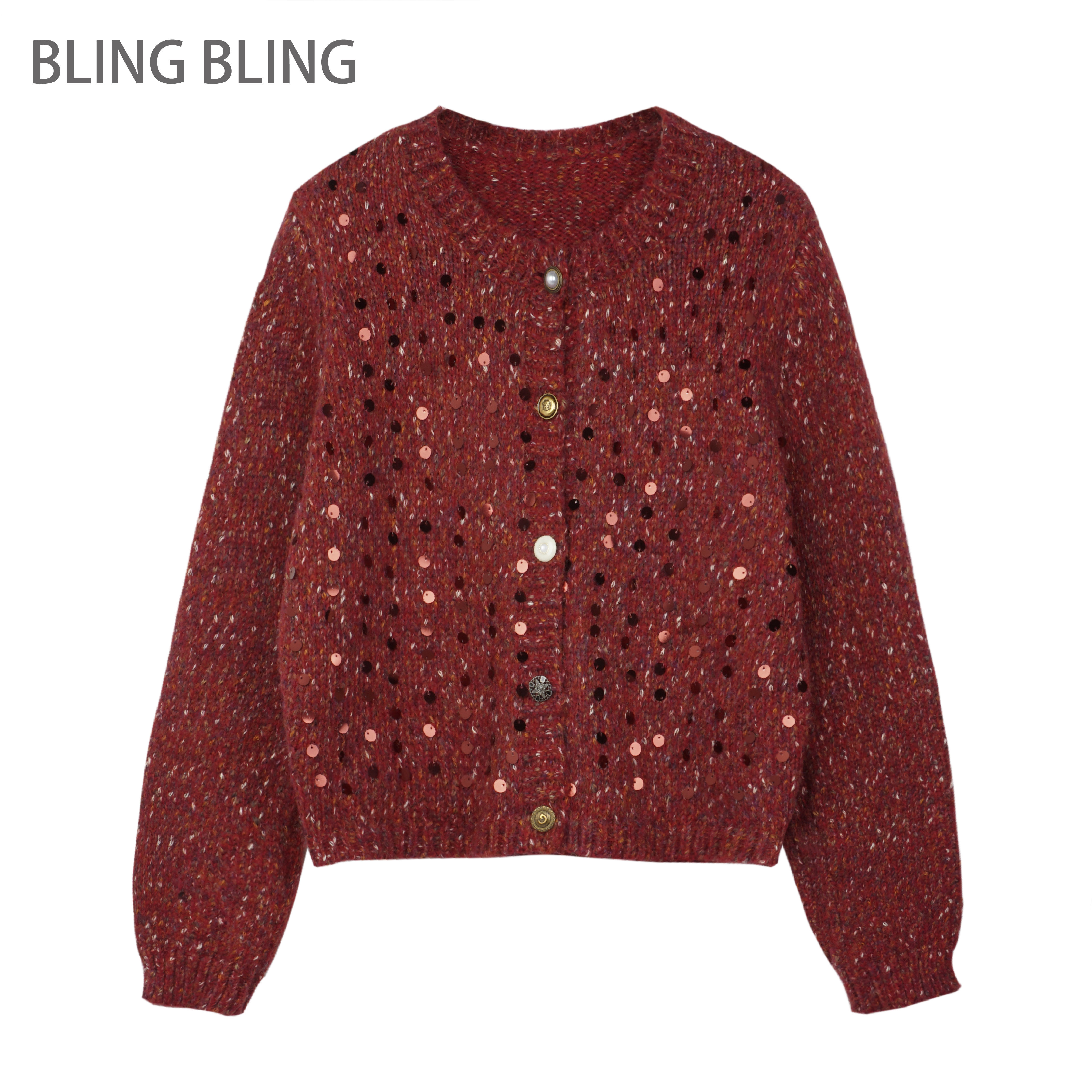 📚 高级感亮片圆领安哥拉红色收腰显瘦针织亮开衫慵懒软糯毛衣外套女