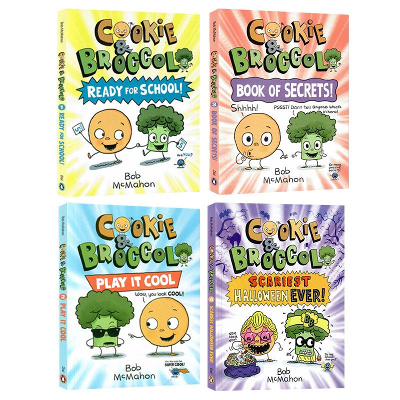 📚 饼干和西蓝花4册套装 英文原版绘本 cookie and broccoli secrets play cool school 儿童启蒙章节图画书 英语读物漫画彩绘读本