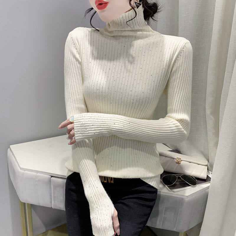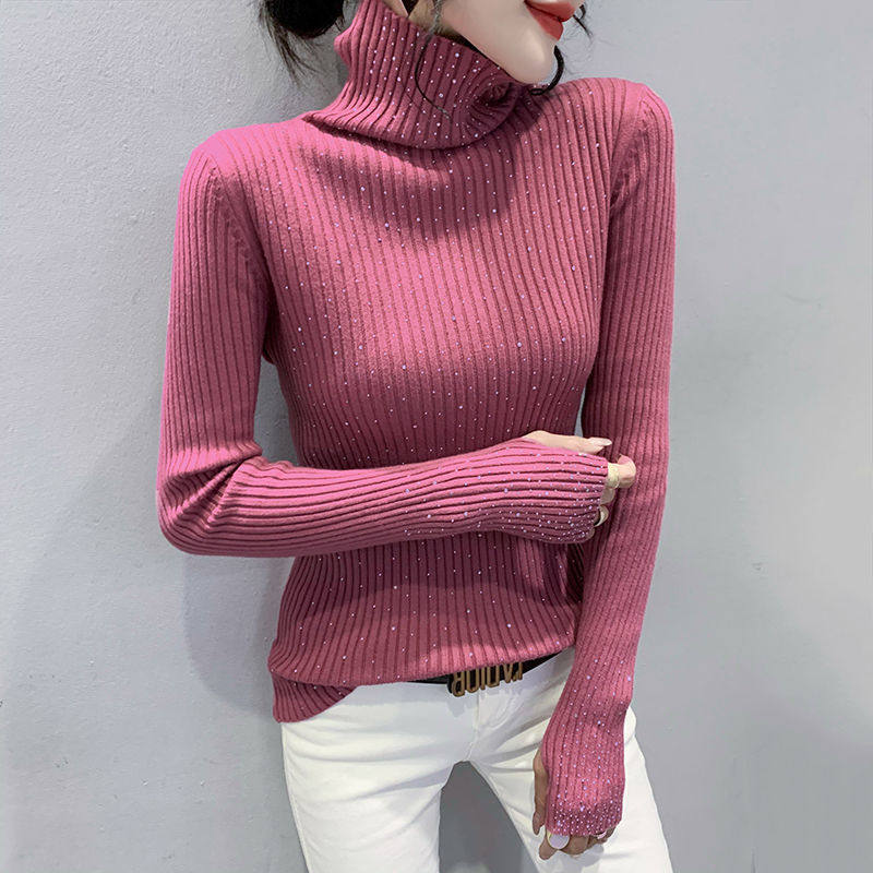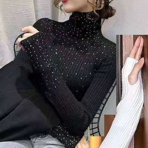 📚 漏拇指洞的毛衣女秋冬高领指套针织打底衫套指线衫护手毛衫连手套