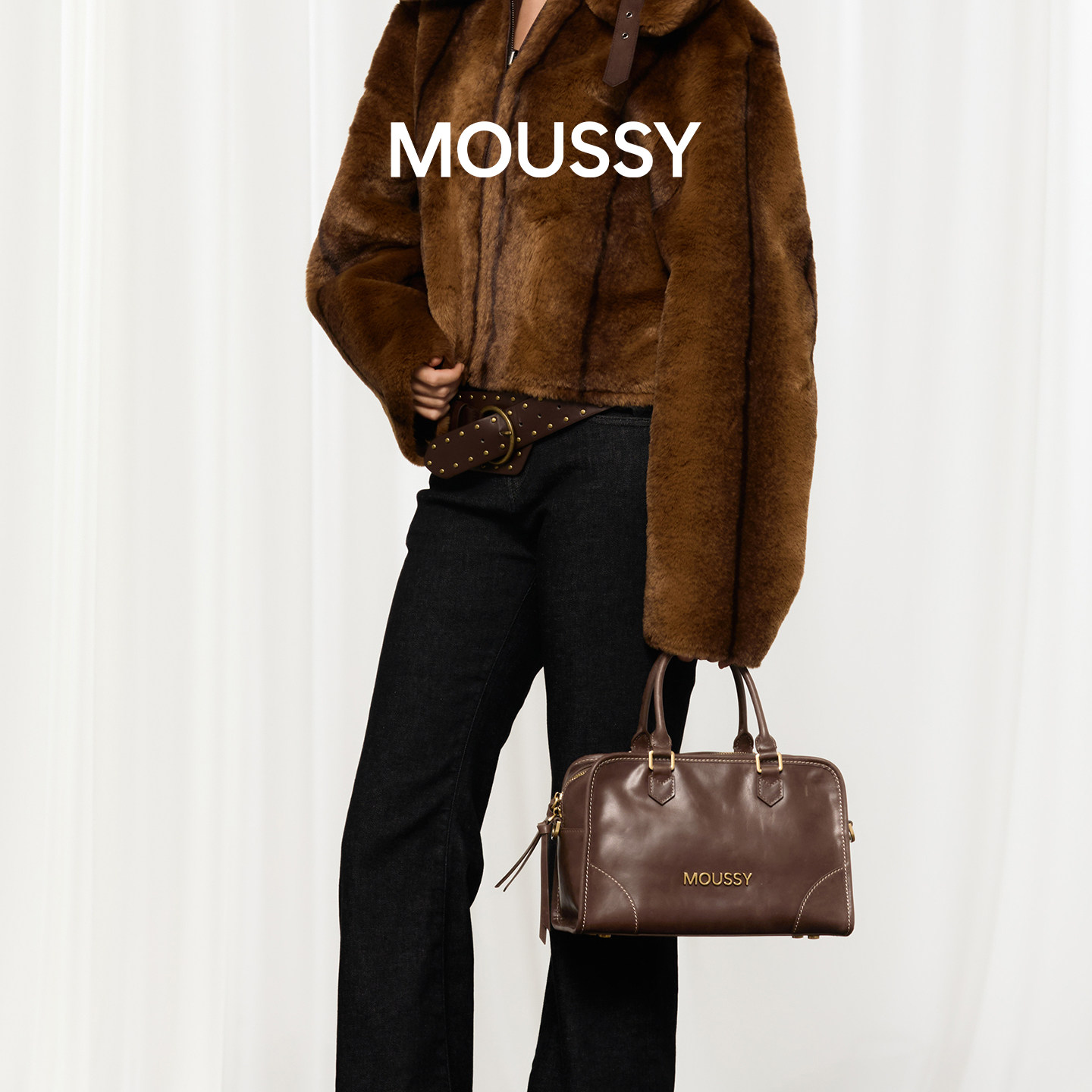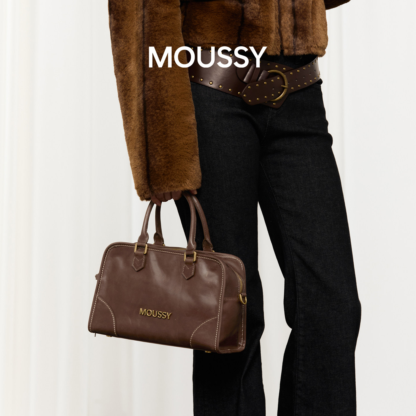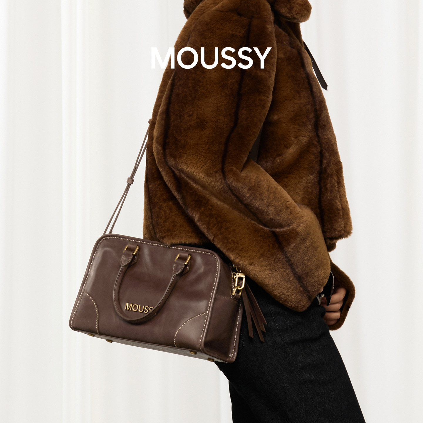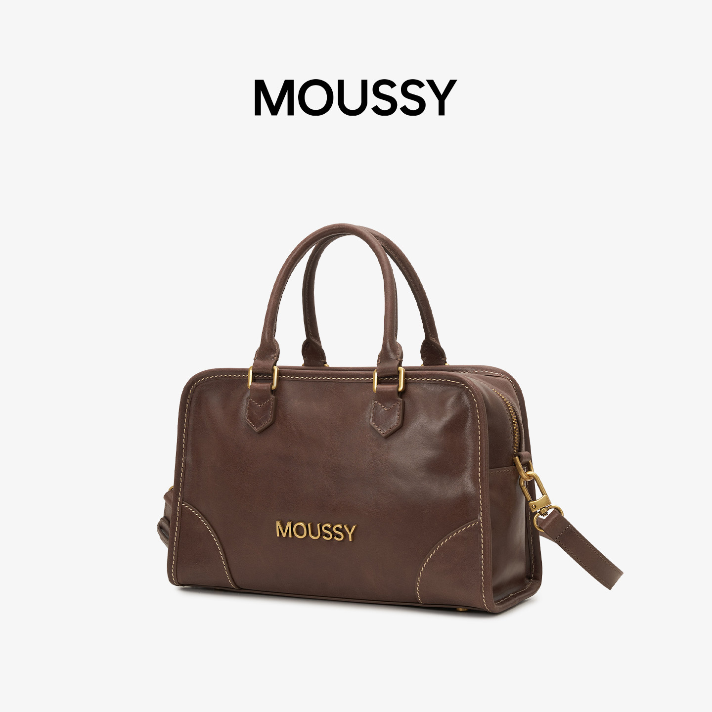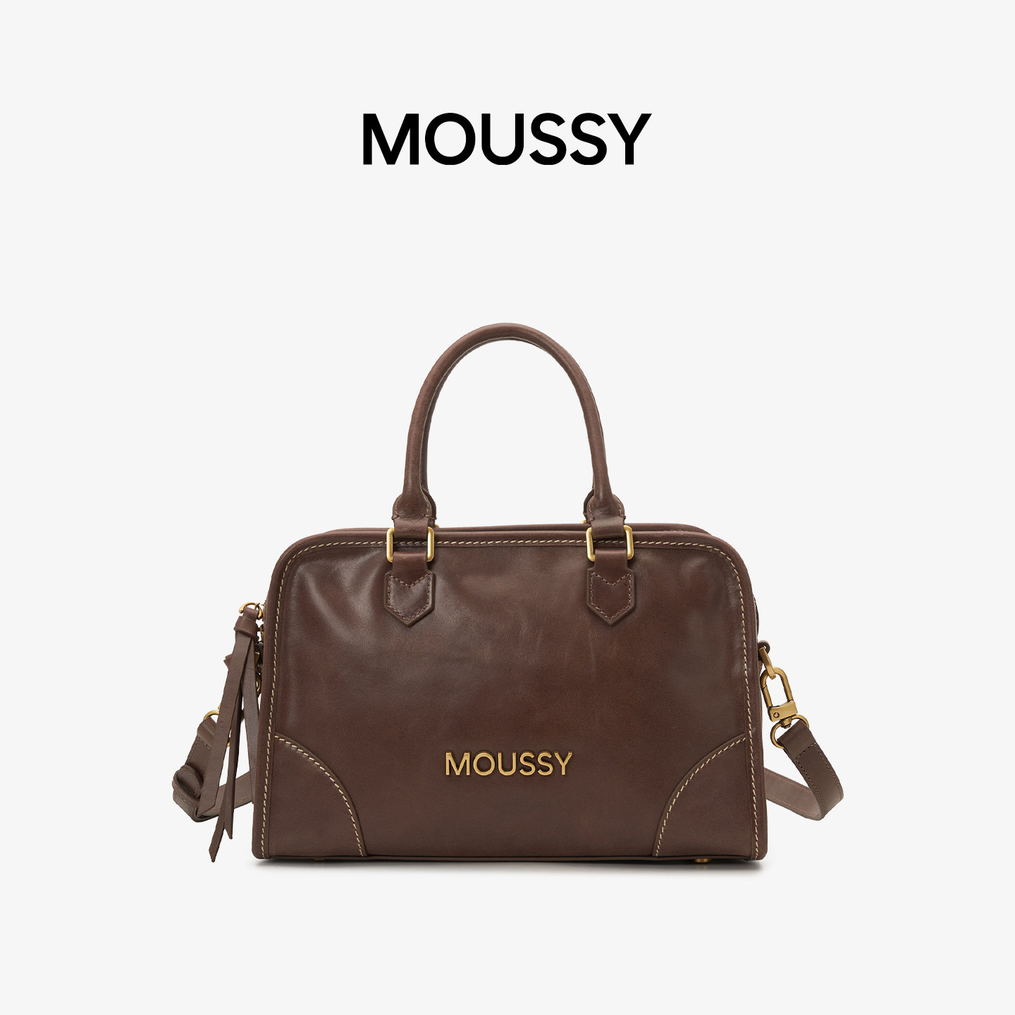 📚 MOUSSY时间的温度手工缝线搽色波士顿女士包大容量单肩斜跨包
