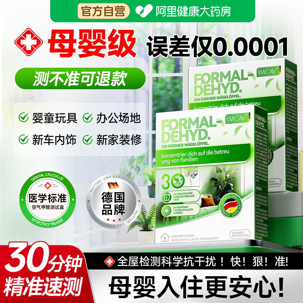 📚 德国甲醛测试盒自测试剂盒空气检测仪器试纸新房室内家用专业测试