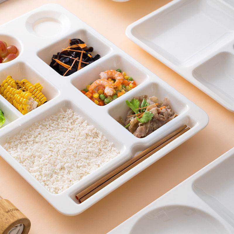 📚 A8密胺餐盘高级感商用食堂打饭分格快餐盘五六七格公司会所饭菜盘