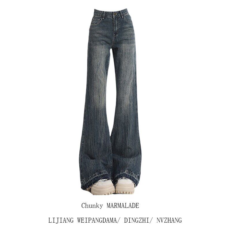 📚 梨形身材不贴腿微喇牛仔裤子女2025新款大码高腰显瘦垂感阔腿裤子